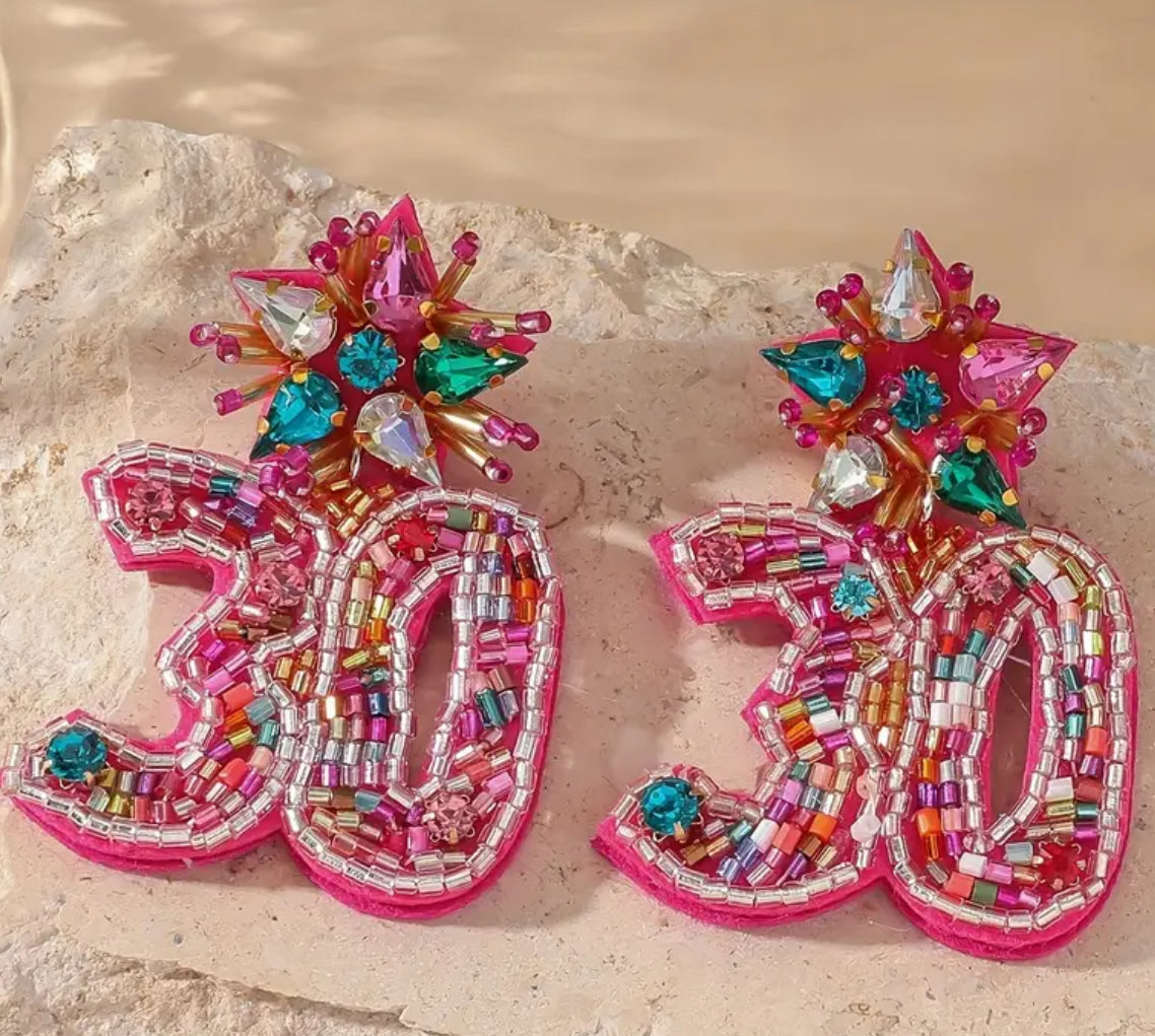 Get ready to sparkle on your 30th birthday with our special earrings! Lightweight and full of bling, these earrings are the perfect accessory for any birthday celebration. Add a touch of elegance and shine to your special day. Order now and get ready to turn heads!