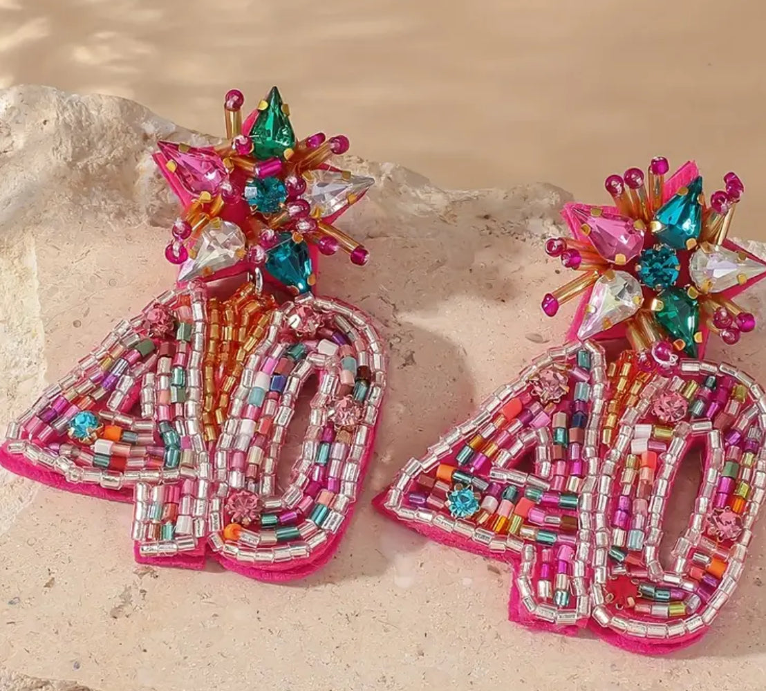 Celebrate the big 4-0 in style with our colorful, lightweight earrings! Perfect for adding a touch of fun to any birthday outfit. Don't settle for a boring celebration, make it memorable with our statement earrings.