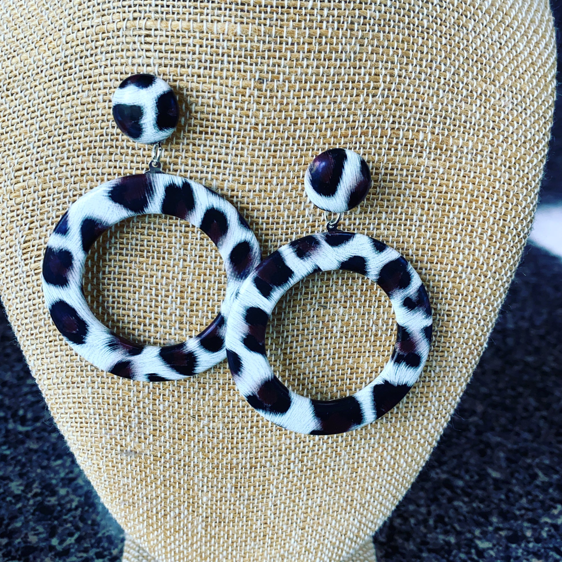 Lightweight Black and white Animal print earrings