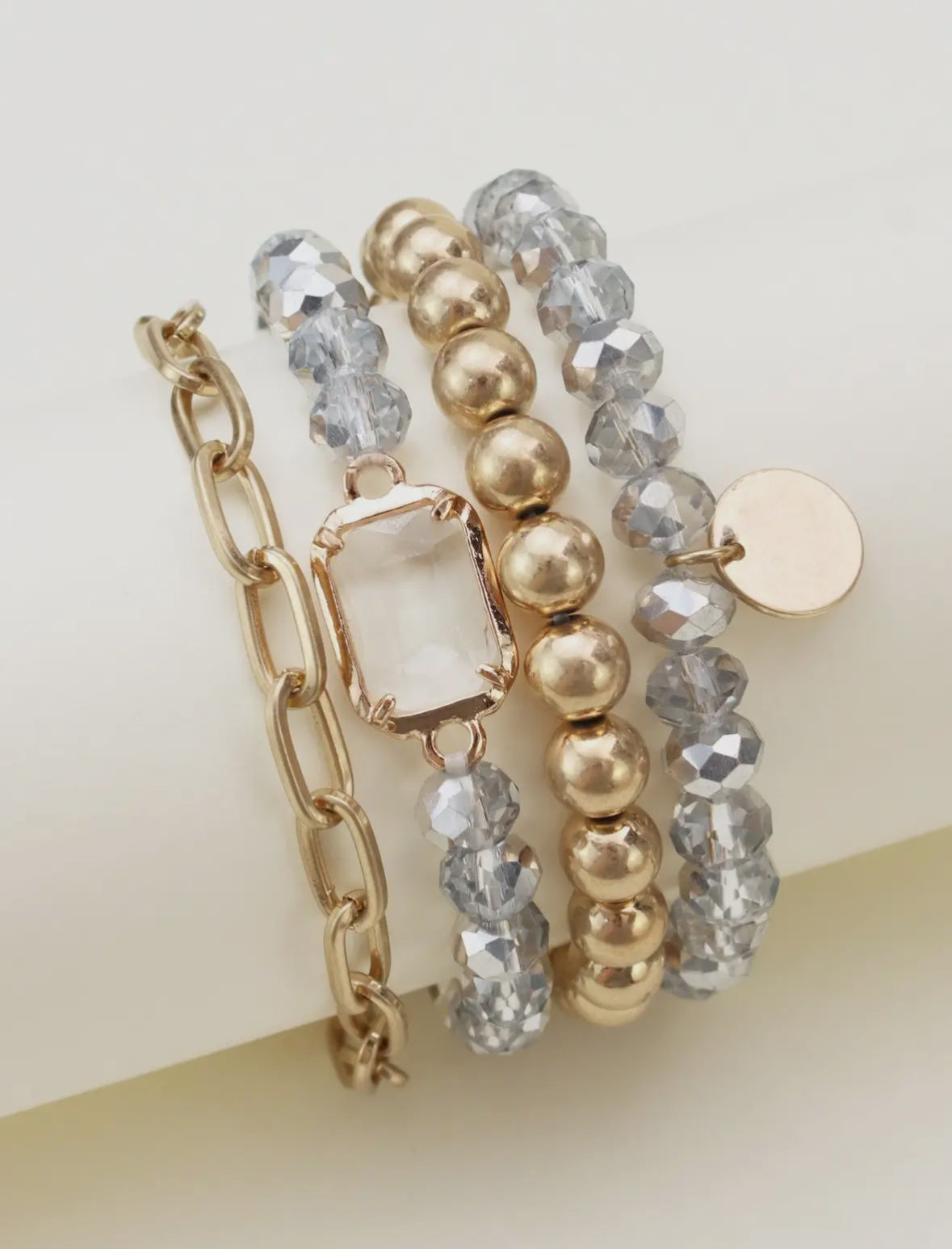 Elevate your style with Ava's stackable grey and gold bracelets! Perfect for adding a touch of luxury to any outfit, these bracelets are a must-have for any fashionista. Expertly designed for versatility, they can be worn alone or stacked together for a bold, statement look. Stand out with Ava.