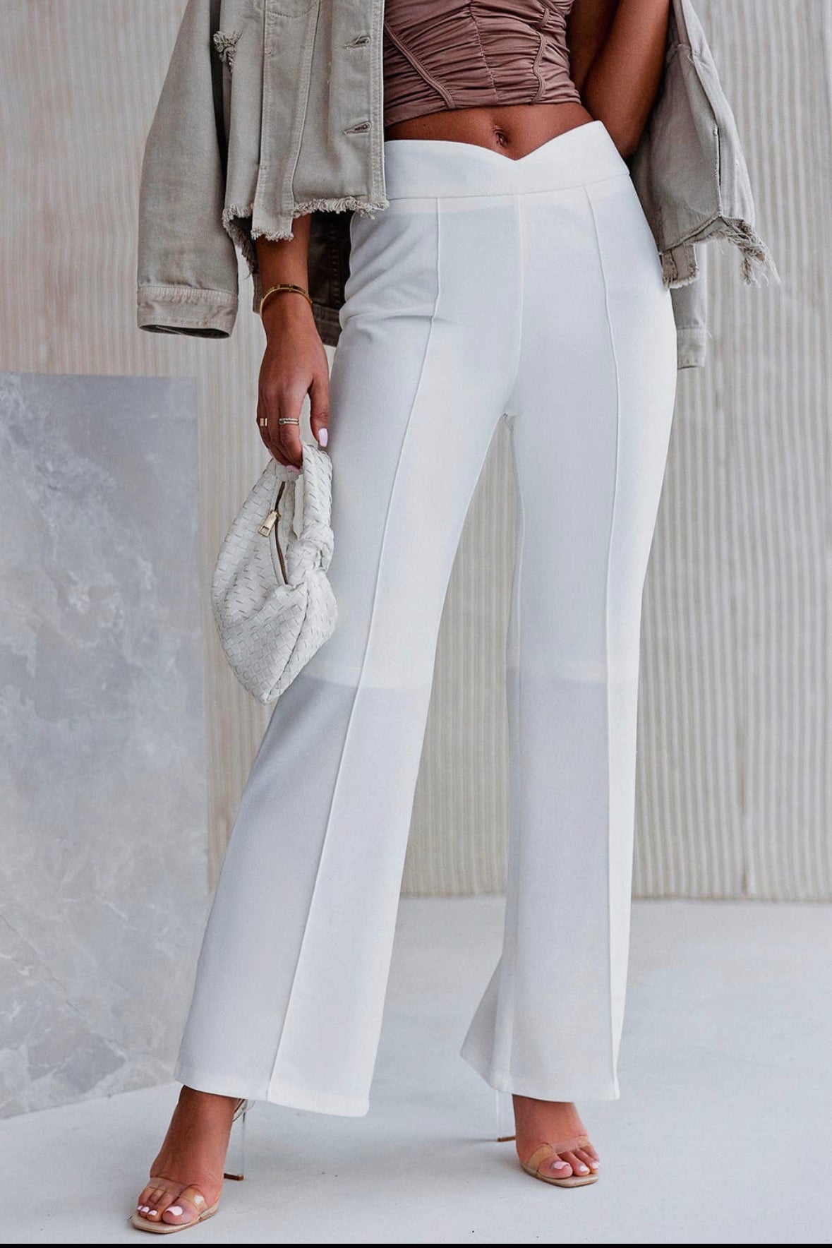 The Bailey pants feature a sophisticated wavy plunge wide leg design that brings stylish elegance to any wardrobe. In white, they add a touch of grace and subtle sophistication to your look. Crafted from the finest materials for luxurious comfort, these pants make a statement of timeless chic.