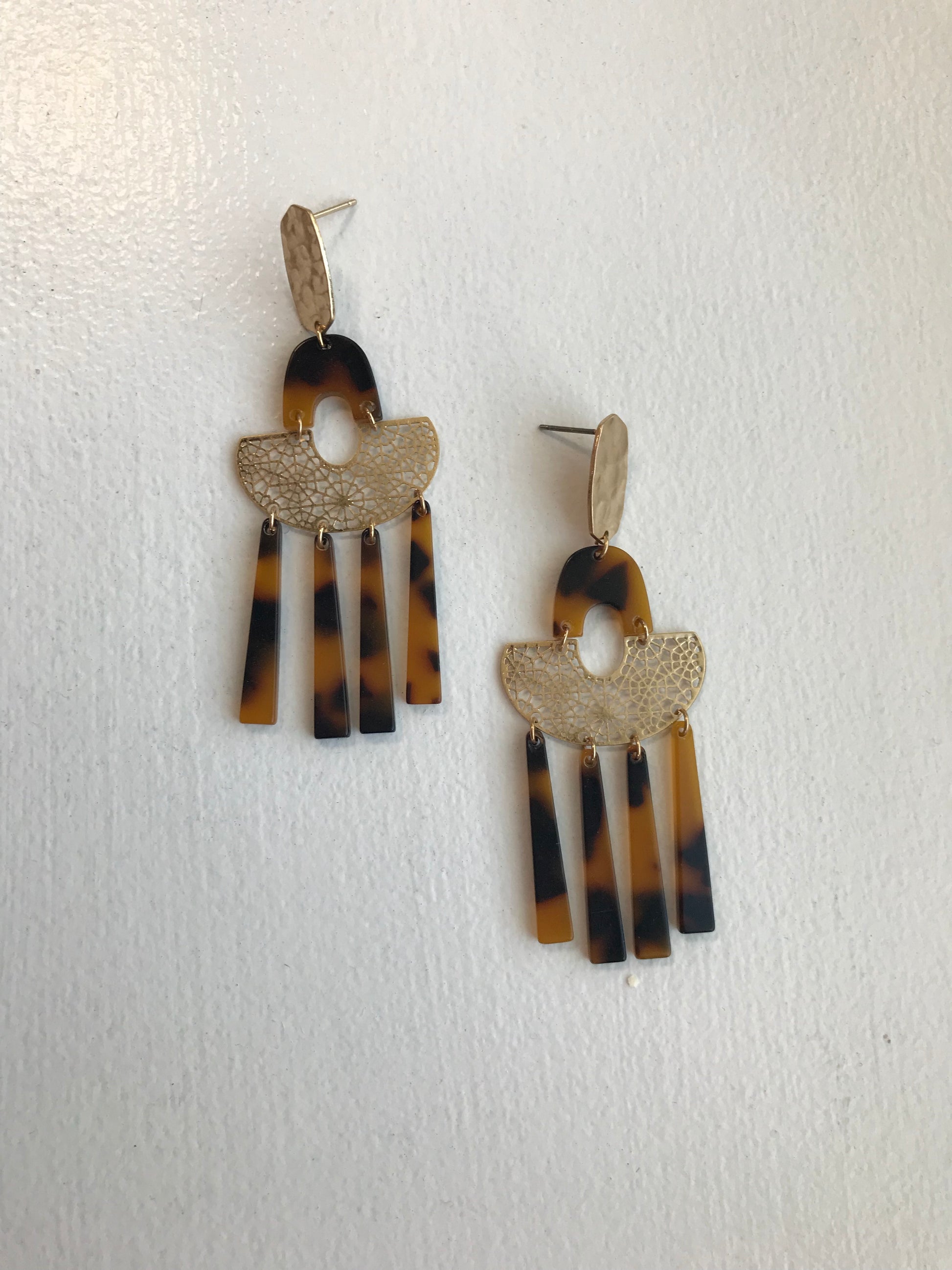 Indulge in the luxurious elegance of these Brown Tortoise Chandiler Earrings. Crafted with acetate marble in a mesmerizing chandelier dangle design, these earrings exude sophistication and charm. Elevate any outfit with these statement accessories and make a bold fashion statement.