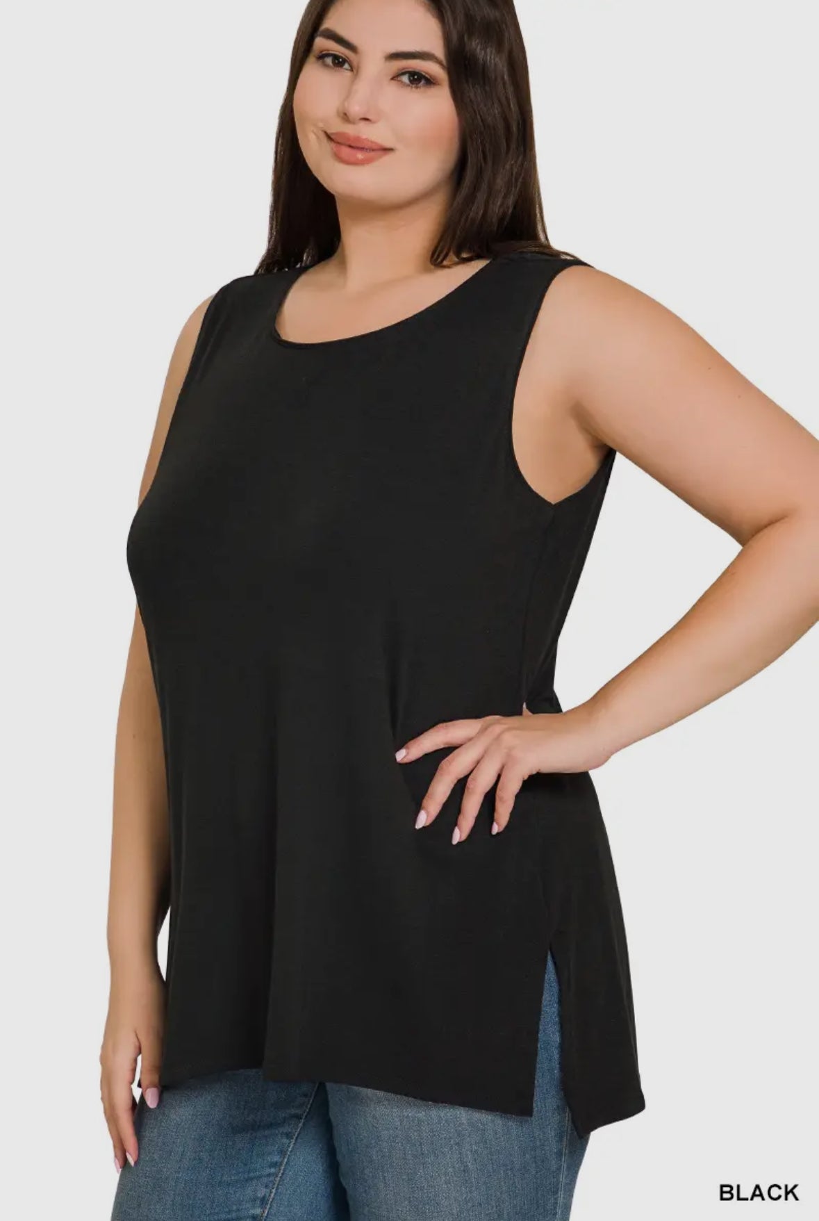 "Get ready to turn heads in Carla - the must-have top for any fashionable wardrobe! With its round neck and sleeveless design, this top is perfect for any occasion. Dress it up or down, the possibilities are endless. Make a statement and stand out from the crowd with Carla!"