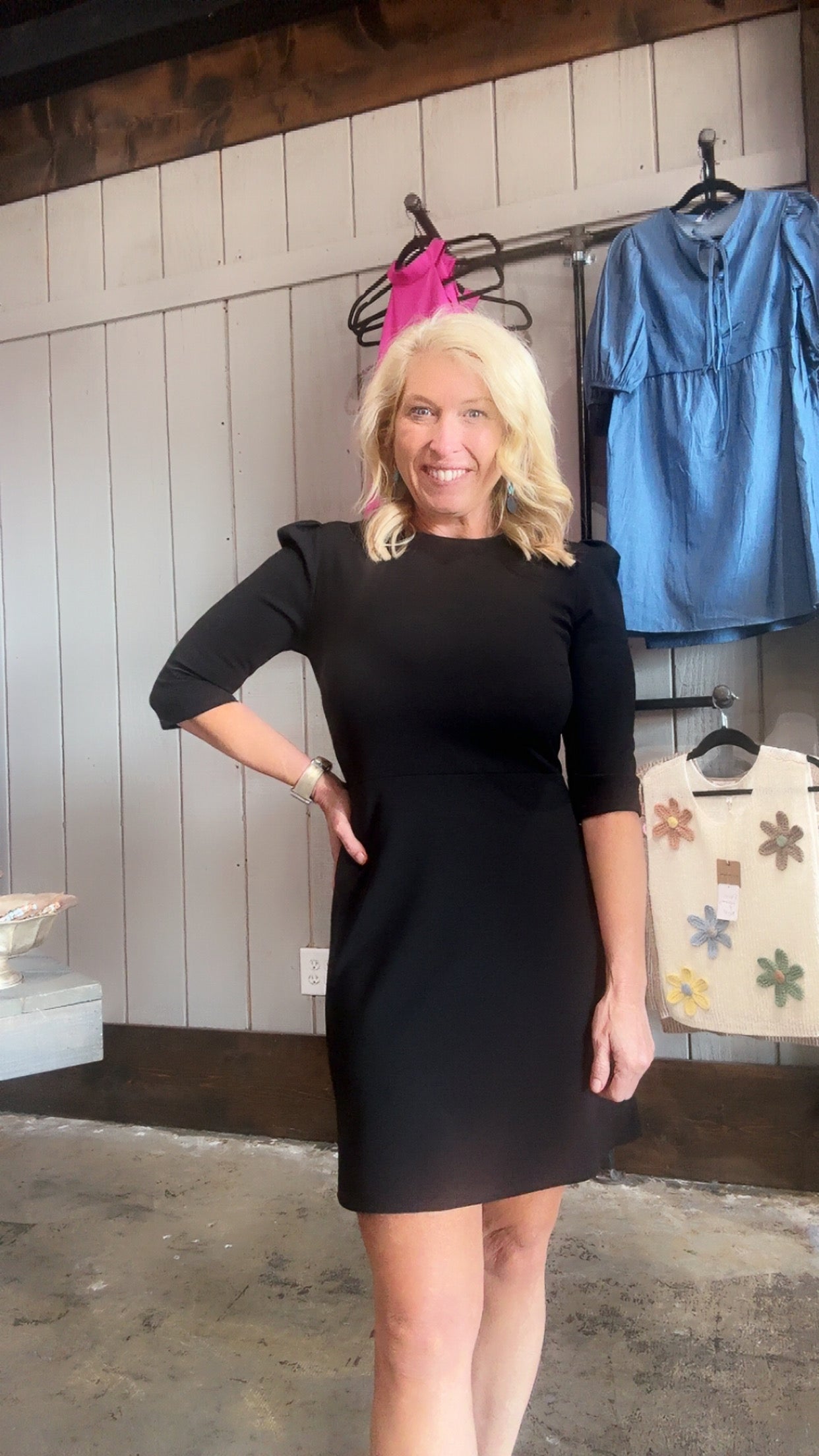 Look (and feel) like a true class act in this stunning piece! The black crepe mini dress features shoulder pleats and a back zipper, along with a classic A-line silhouette that will have you standing out from the crowd. Step out in style!