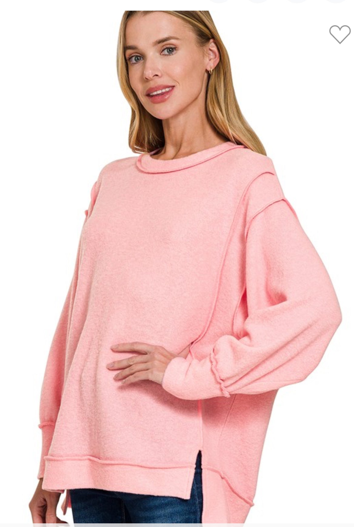 Cozy up in our Comfy Moments! This exposed seam oversize sweater boasts 82% polyester, 13% rayon, and 3% spandex for the perfect blend of comfort and style. Stay warm and fashionable with this must-have addition to your wardrobe.