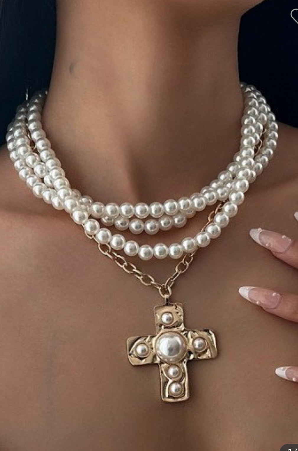 Introducing the Cross necklace, a must-have accessory for any fashion lover. This multi wrap pearl beaded necklace features a charming cross charm, layered in a trendy style. Elevate any outfit with this unique and versatile piece. Express your individuality and make a bold statement with the Cross necklace!