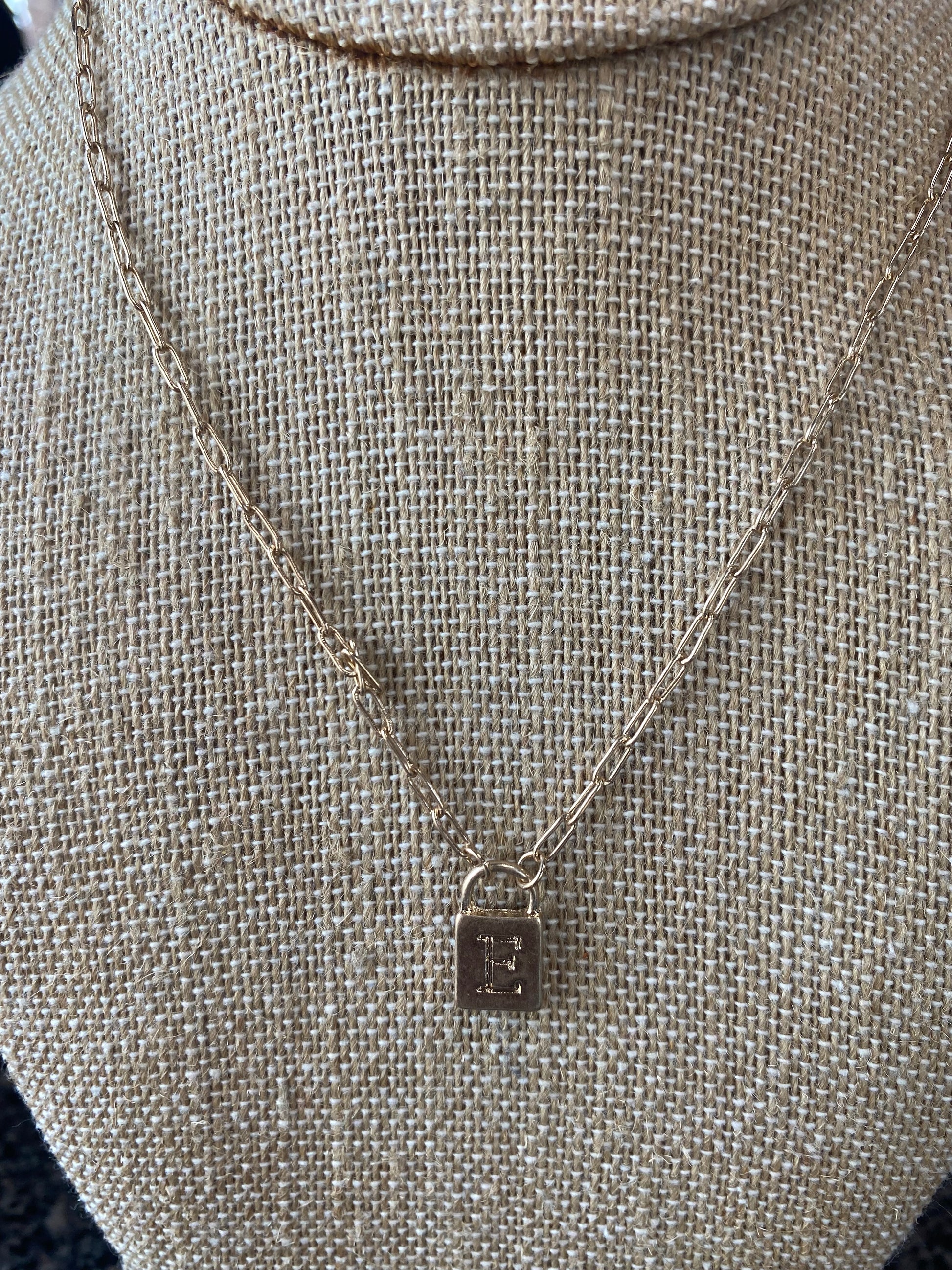 Add a personal touch to your style with our E Lock initial necklace! This short necklace features a beautiful lock pendant with your chosen initial engraved on it. A stylish and unique statement piece that will add an extra special touch to any outfit.