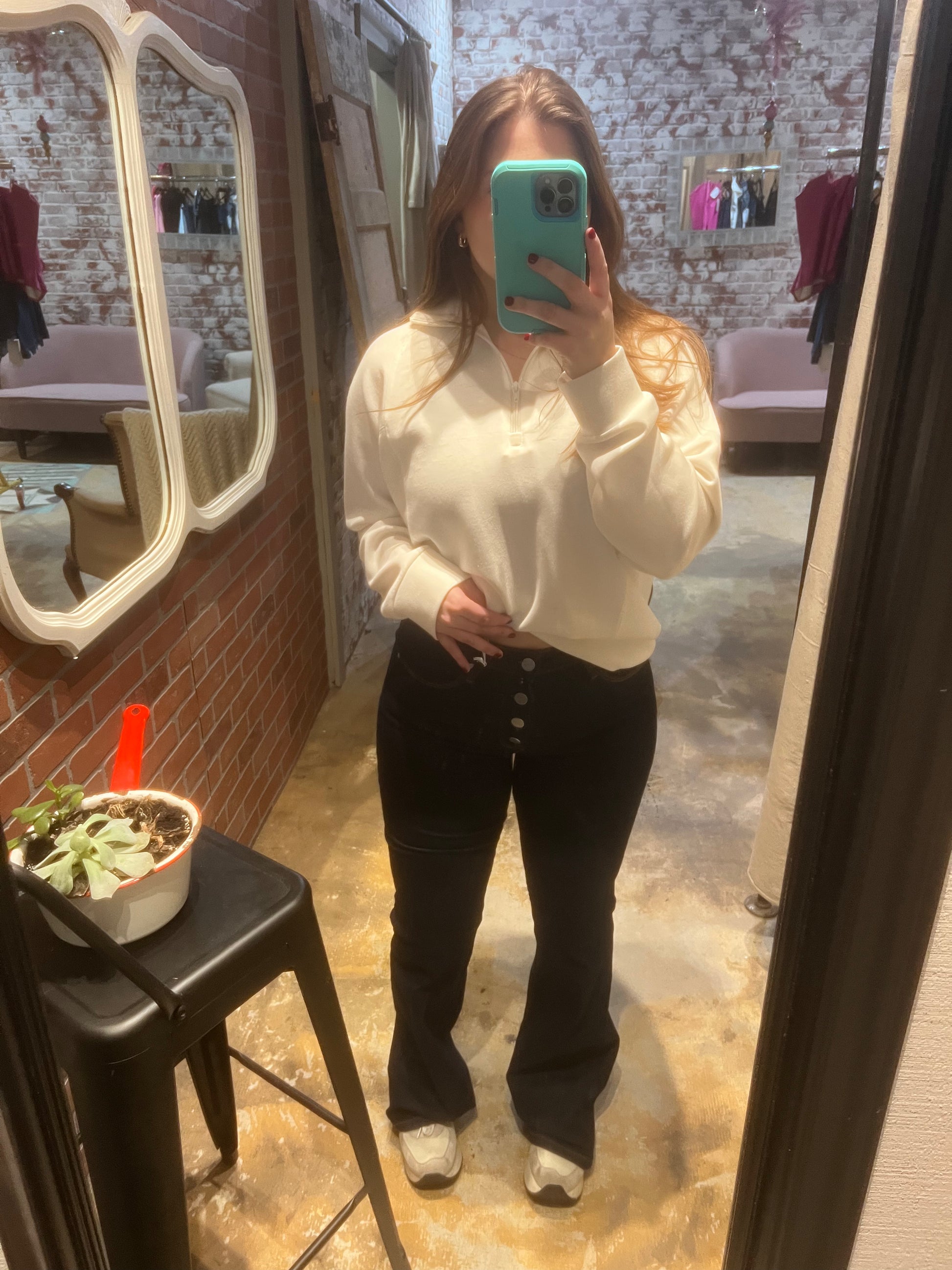 Elevate your style with our new Midrise Flare Button up Risen Jeans! Featuring a 9.5 inch rise and a body-flattering flare, these dark jeans are made of a comfortable cotton-polyester-spandex blend for a perfect fit. Experience both comfort and style with a 33 inch inseam.