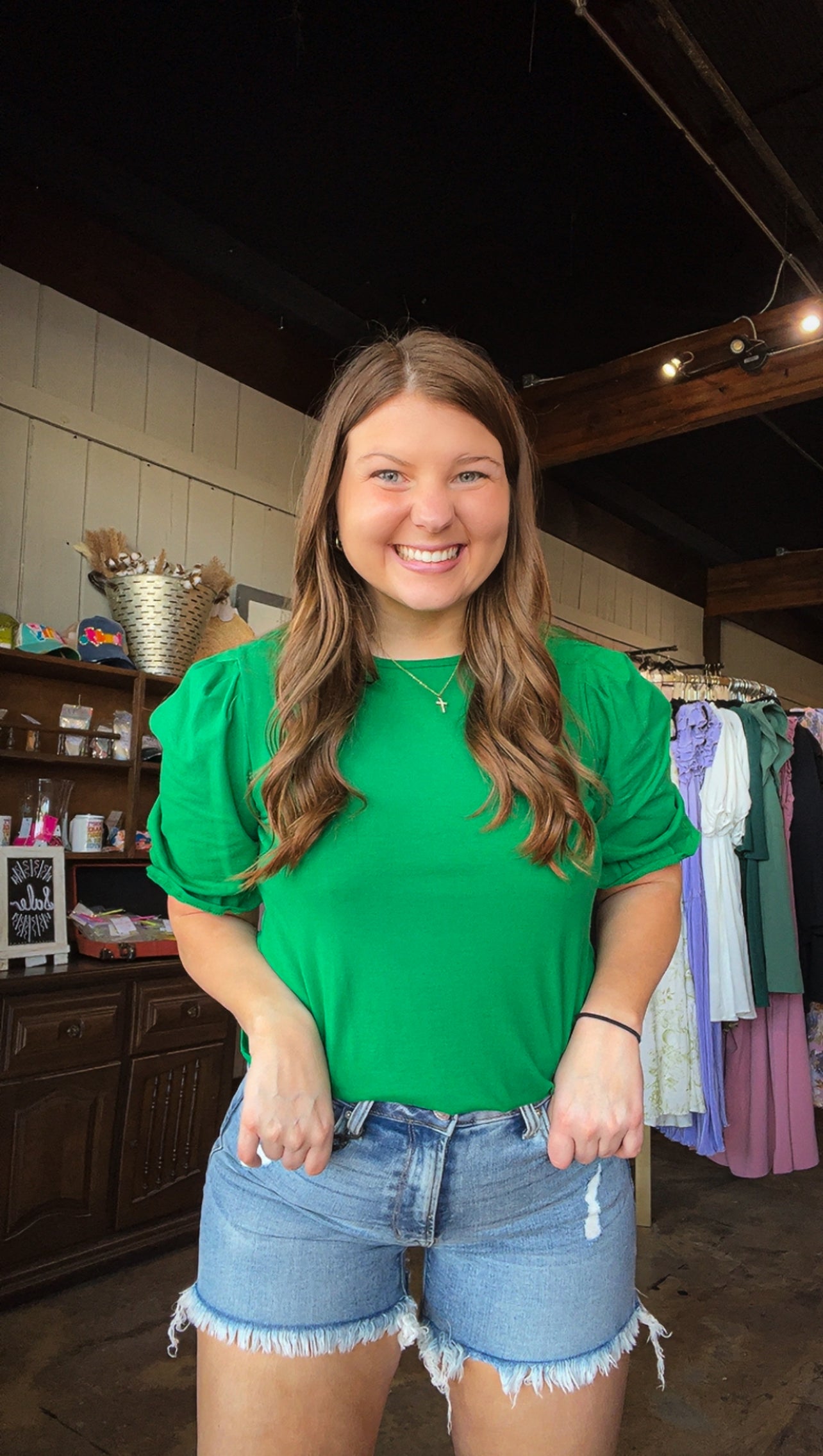 Experience Evergreen Elegance, the versatile and stylish Kelly green top that's perfect for any occasion. Dress it up or down, and always stay comfy. Elevate your wardrobe with this must-have piece!