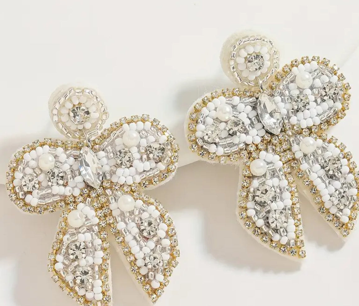 These lightweight white silver and gold bow earrings are the perfect addition to any outfit. With a cute and elegant design, they are suitable for any occasion. The combination of colors adds a touch of sophistication, making them a must-have for any fashion-forward individual.