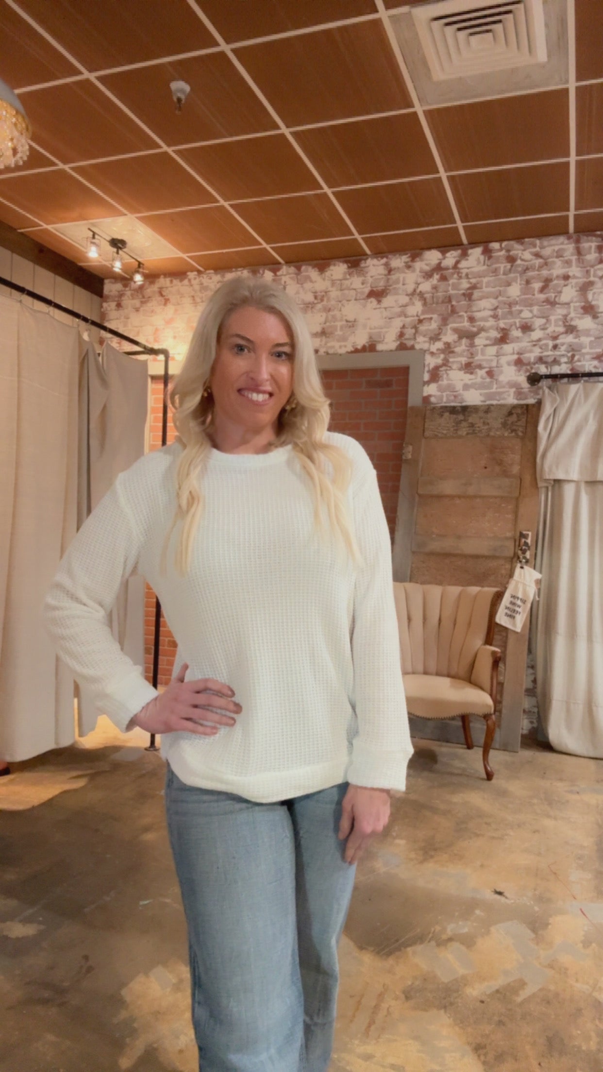 The Frannie sweater is a cozy and stylish addition to your wardrobe. Made with soft, chenille fabric and featuring a waffle texture and round neck, it offers both comfort and a touch of elegance. Perfect for chilly days and nights, this sweater will keep you warm and fashionable all season long.