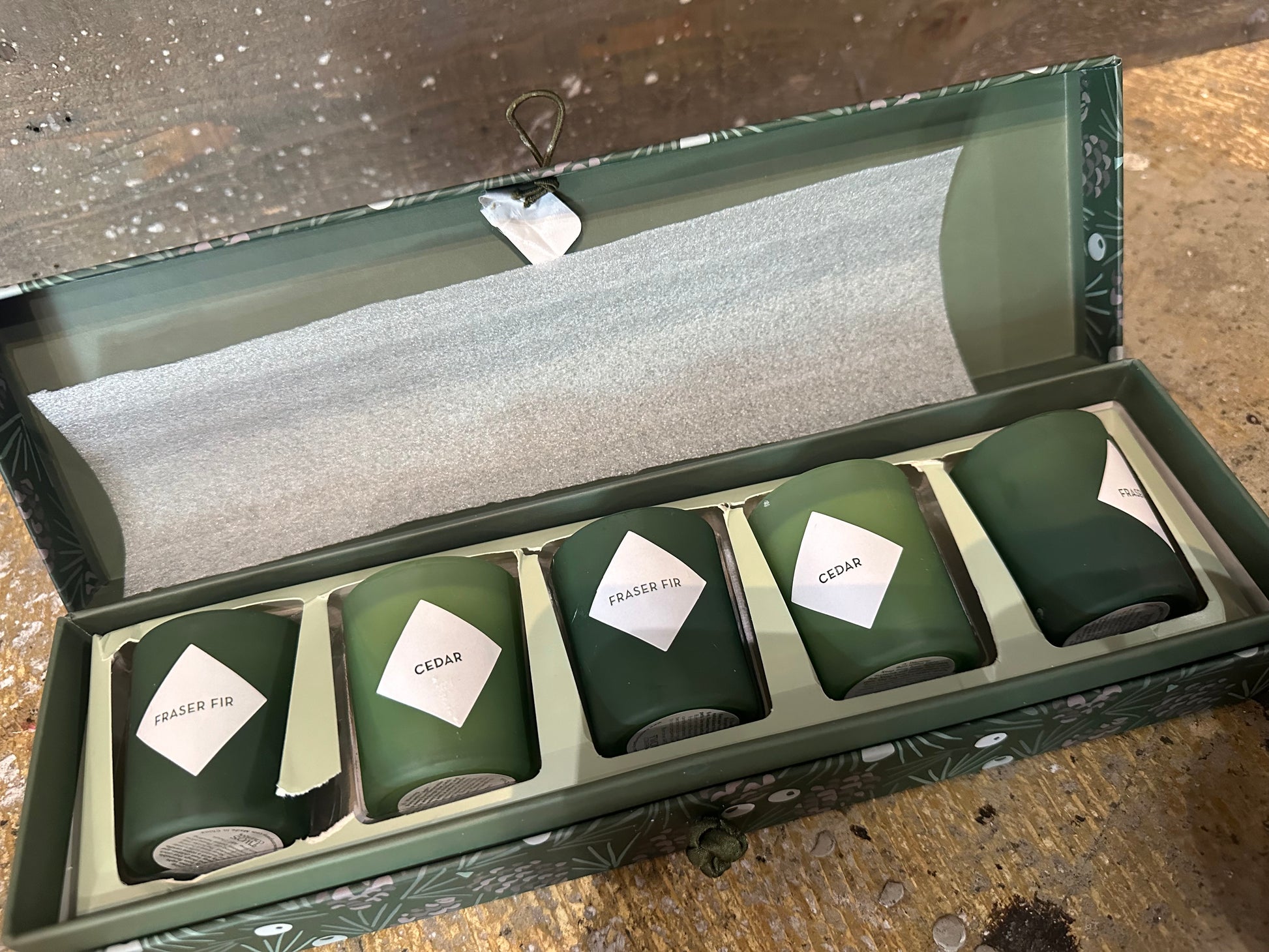 Indulge in the warm and inviting scents of the Frazier Fir + Cedar candle set by Twos Company. Made with soy wax, each set includes five votive candles that will bring a cozy and inviting atmosphere to your home. Perfect for creating a relaxing ambiance or for a special occasion. Embrace the benefits of these beautifully crafted candles today!