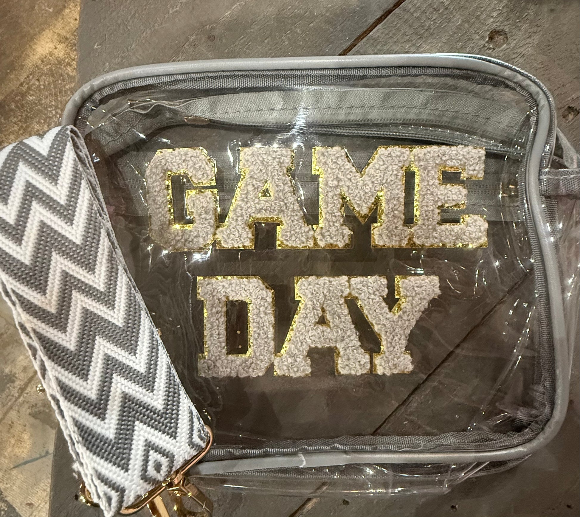 Be game day ready with our Game Day Gray chenille clear purse. This stylish grey purse is perfect for sporting events and concerts, meeting security clear bag requirements. Stay organized and trendy while cheering on your favorite team or artist.