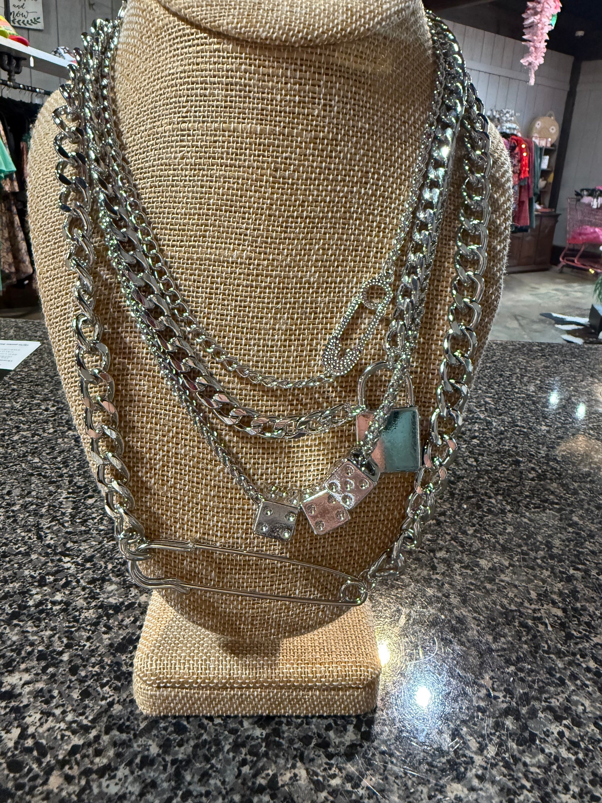Indulge in the luxurious layers of our Go Big necklace. With stunning silver accents, this necklace adds a touch of elegance and glamour to any outfit. Elevate your look and make a statement with this must-have accessory.