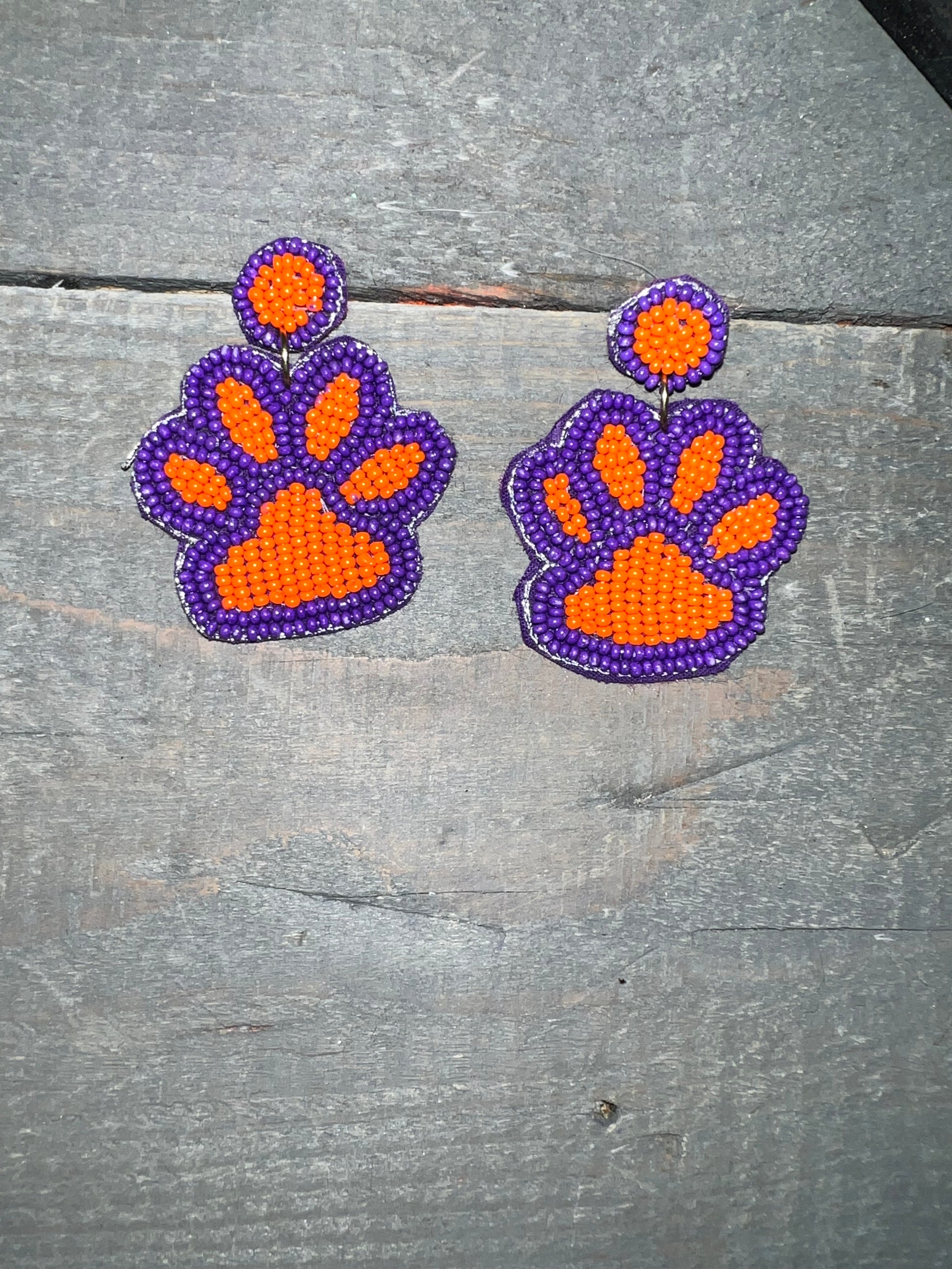 Introducing Go Go, a pair of beaded earrings that combines playful pops of purple and orange paw motifs. With these unique and vibrant earrings, you'll make a statement and add fun to any outfit. Handmade with love, these earrings are a must-have for any fashion-forward individual.