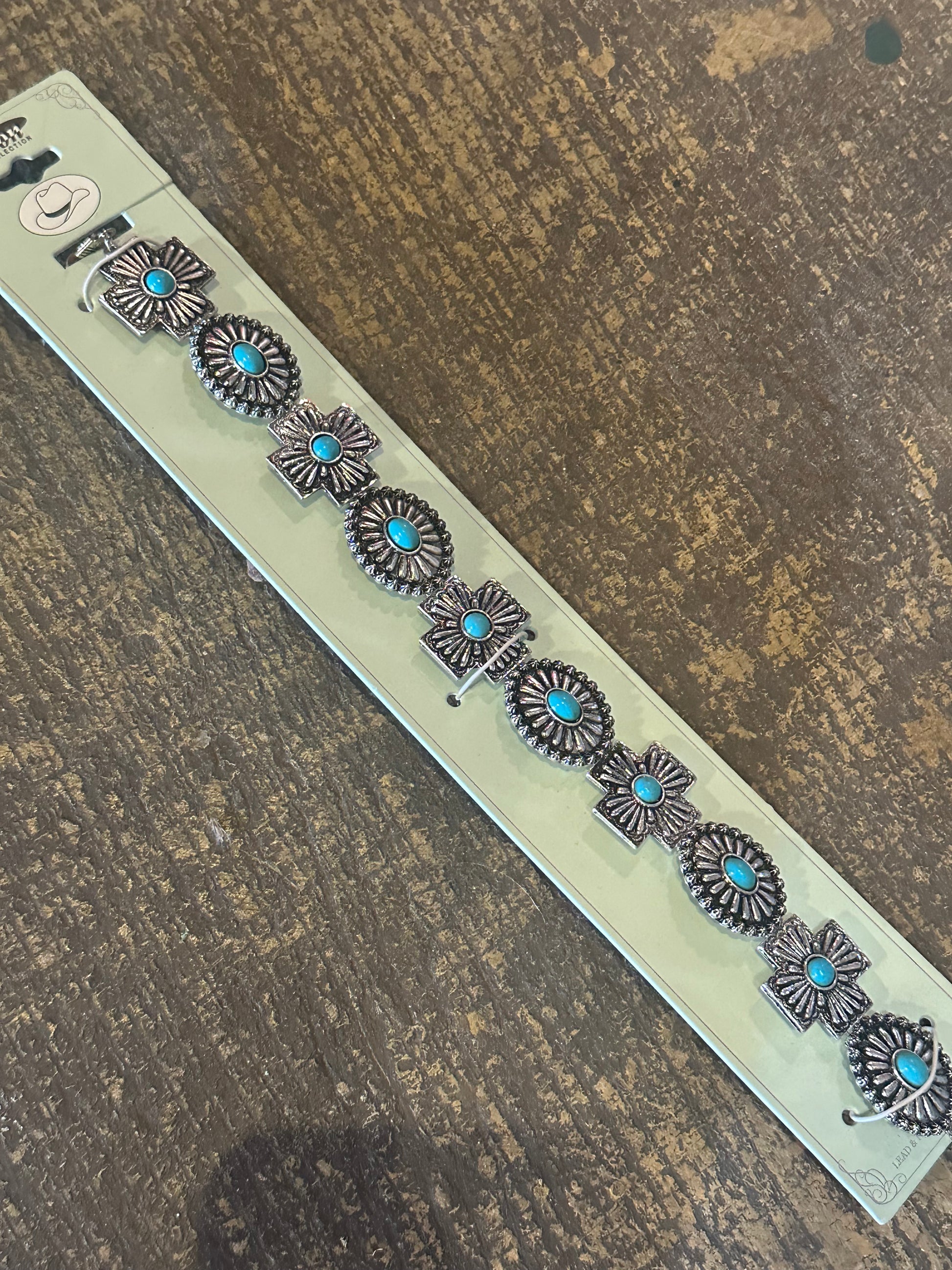 Transform the look of your favorite hat with our Silver and Turquoise Western Hat Bands. Made for versatility, our hat bands provide a unique and stylish update to any hat. Bring a touch of western flair to your wardrobe with our easy-to-use accessory.