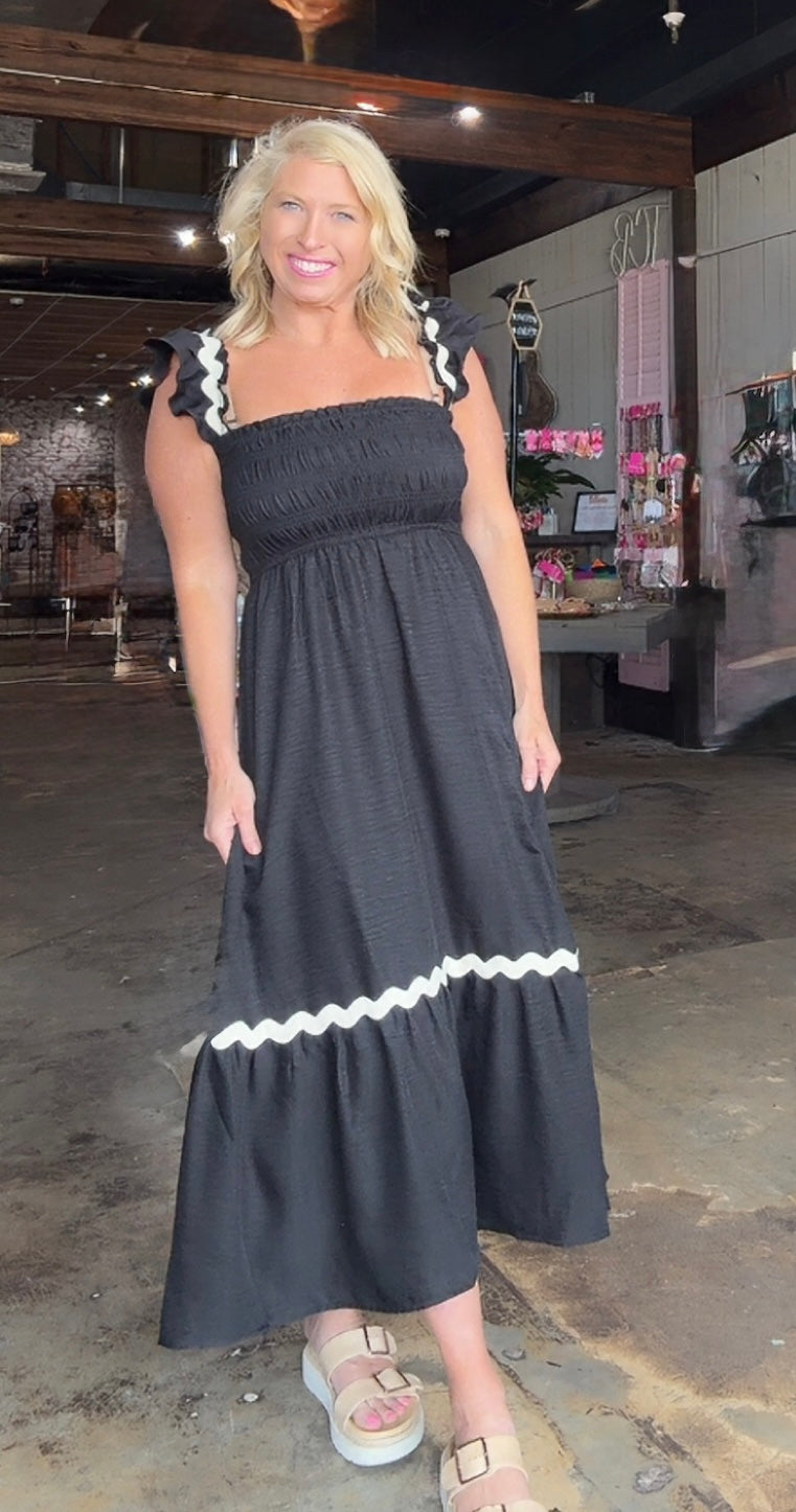 Transform any outfit into a statement with Haydin - the wavy trim ruffle sleeveless midi dress. Elevate your style with the unique design and effortless flow of the cut. Perfect for any occasion, embrace your boldness and turn heads with Haydin. Experience fashion with a touch of flair.