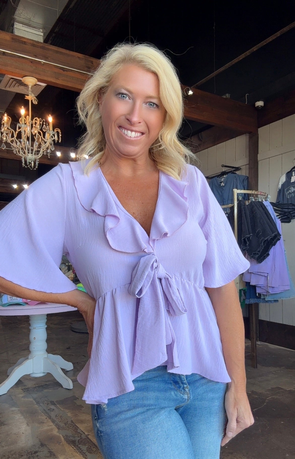 Transform your wardrobe with Heather, the ultimate babydoll top. Featuring flutter sleeves and adjustable ties at the center, this top is made of 100% polyester for a comfortable and stylish fit. Elevate your style with Heather and be the center of attention wherever you go!