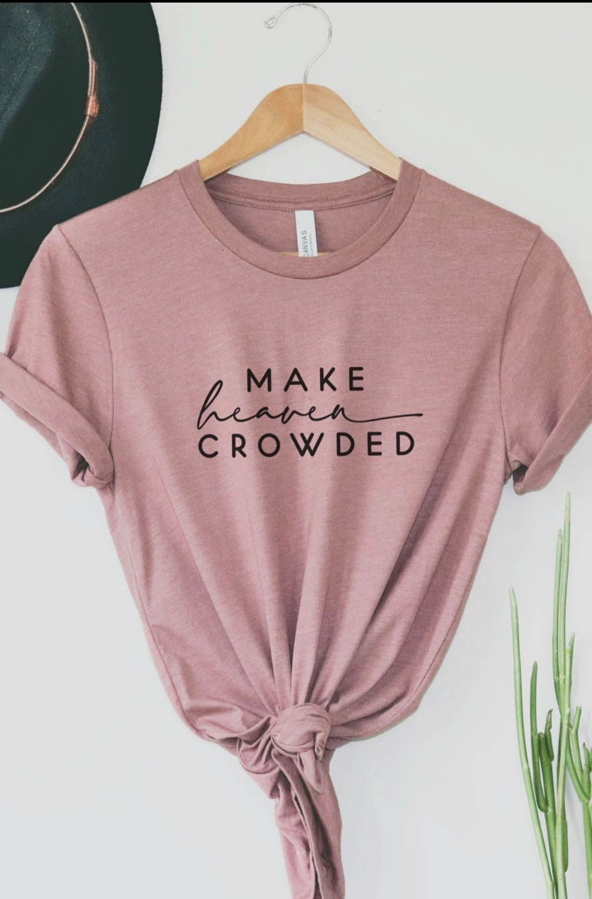 The Heaven Crowded Graphic T-shirt is perfect! Crafted with high-quality materials, this t-shirt promises both comfort and style, with a simple yet eye-catching design that will definitely turn heads. Make a statement and show your love for making Heaven Crowded today!