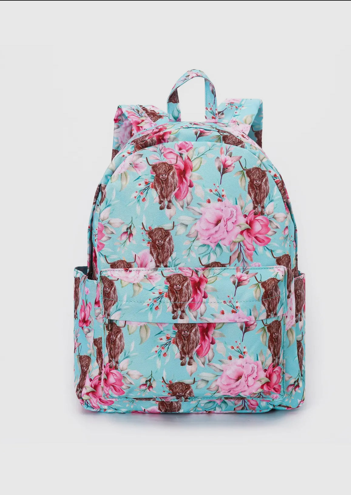 "Be the talk of the town with this Highland cow flower girl backpack! Lightweight yet spacious, it's perfect for carrying all your essentials while adding a quirky touch to your outfit. Plus, at 13.5x17, it's the perfect size for everyday use. (Moo-ve over boring backpacks!)"