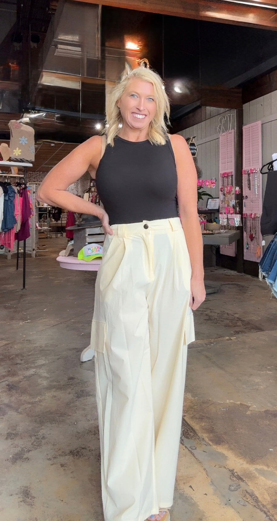 These parachute cargo pants are giving cool girl energy with side pockets, buckle strap detail, and that perfect mix of comfort + edge. Whether you’re running errands or running the world — Joanna’s got your back! 💥