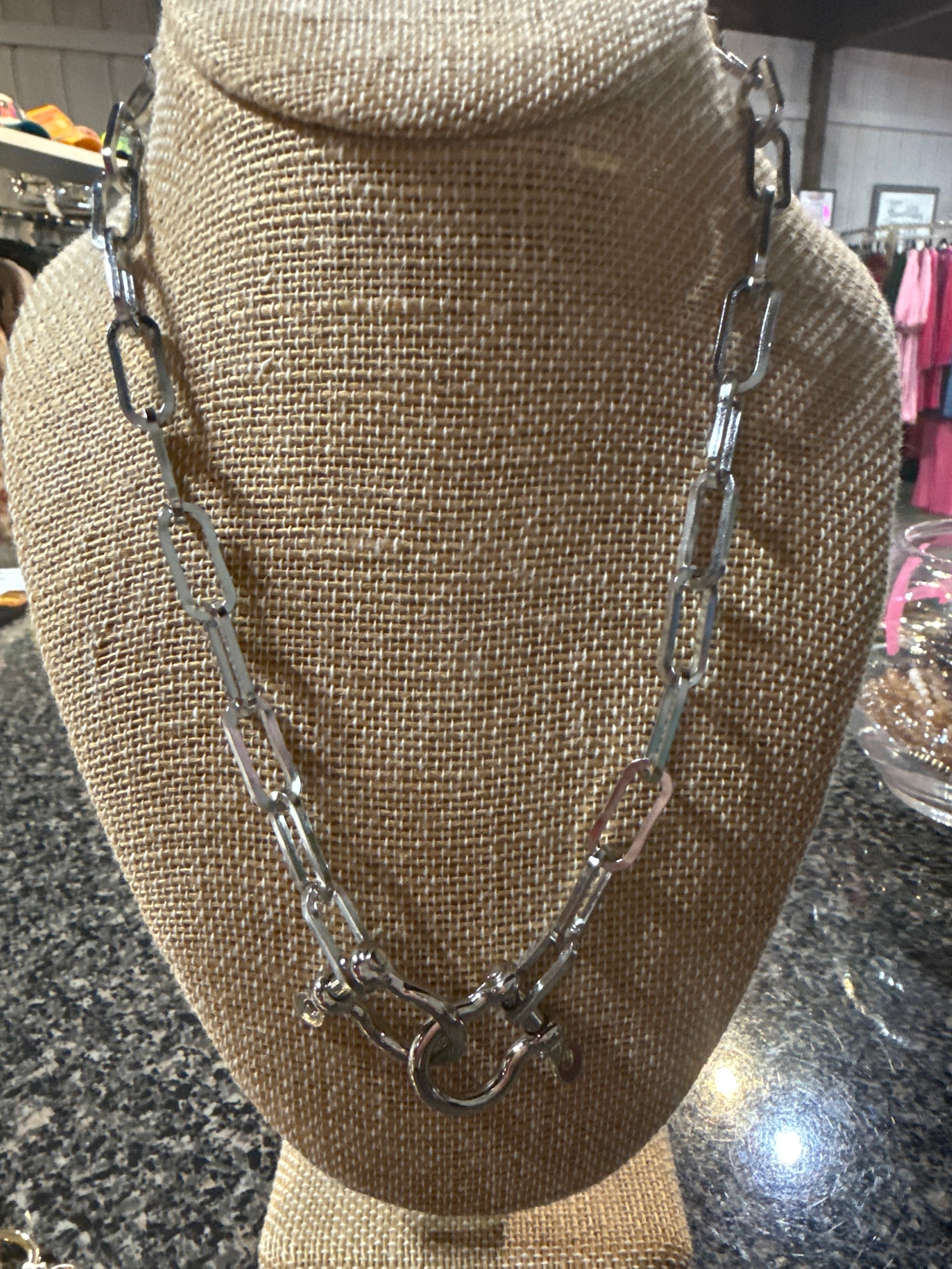 "The Josie necklace - a daring choice for the fierce and adventurous. Made of sleek silver, this necklace will add a touch of boldness to any outfit. Strut your stuff and conquer the day with Josie by your side!"
