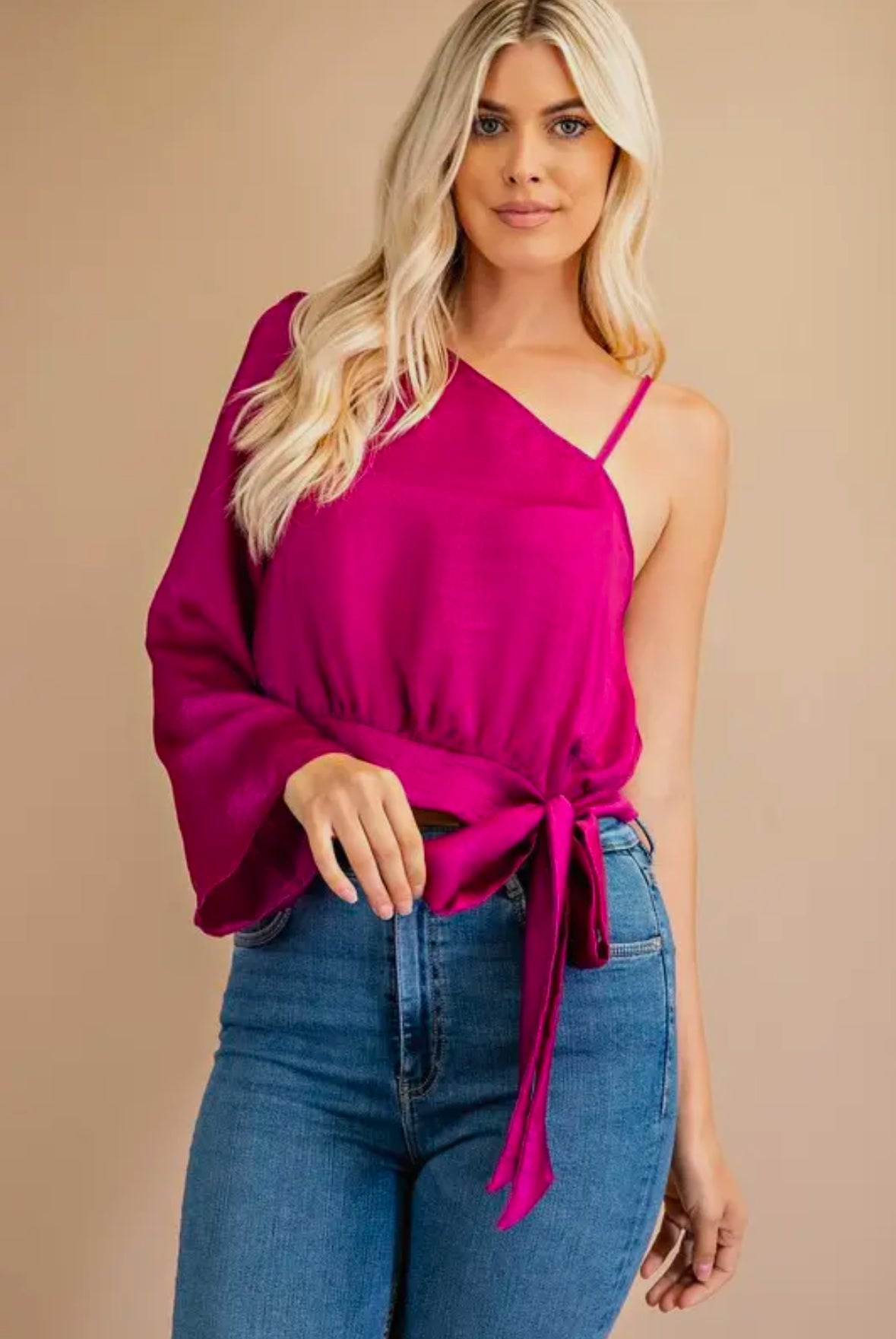 Transform your wardrobe with the Katie Ann one shoulder tiered blouse! This stunning blouse features a unique one shoulder design that adds a touch of elegance and a tiered style for a flattering silhouette. Made from high-quality materials, this blouse is perfect for any occasion and will elevate any outfit. Embrace your individuality and stand out from the crowd with the Katie Ann blouse.