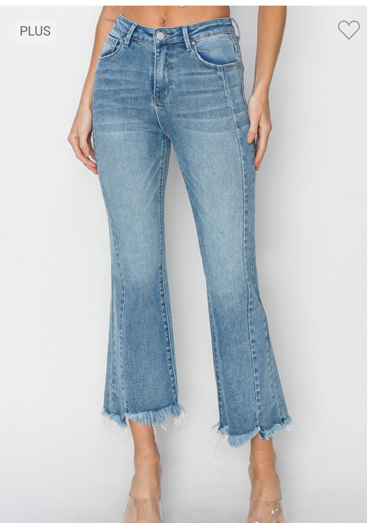 "Experience a perfect fit and flattering silhouette with Kimberly's Risen Jeans. With a high rise, step hem and ankle flare, these jeans offer a 1.3 rise and 27 inch inseam for a comfortable and stylish look. Upgrade your denim game now!"