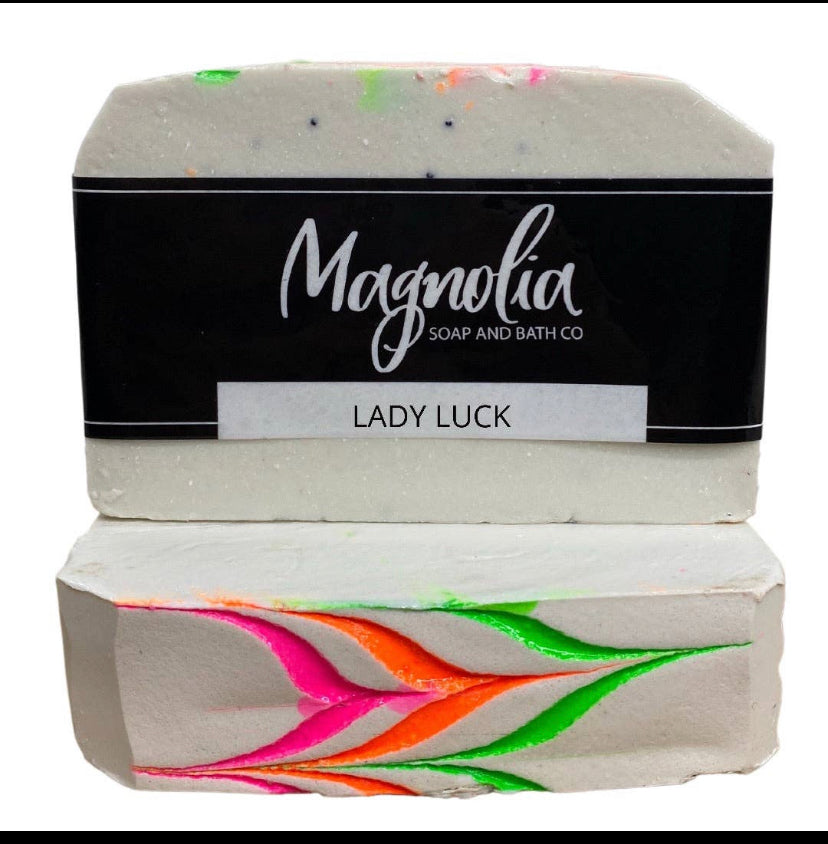 Make sure your luck never runs out with Lady Luck soap! The Magnolia Soap Company's sweet clean smell will keep your skin feeling fresh and reinvigorated, so you can be ready to take on whatever the world throws at you. Who knows, maybe you'll even get some extra luck in the process!
