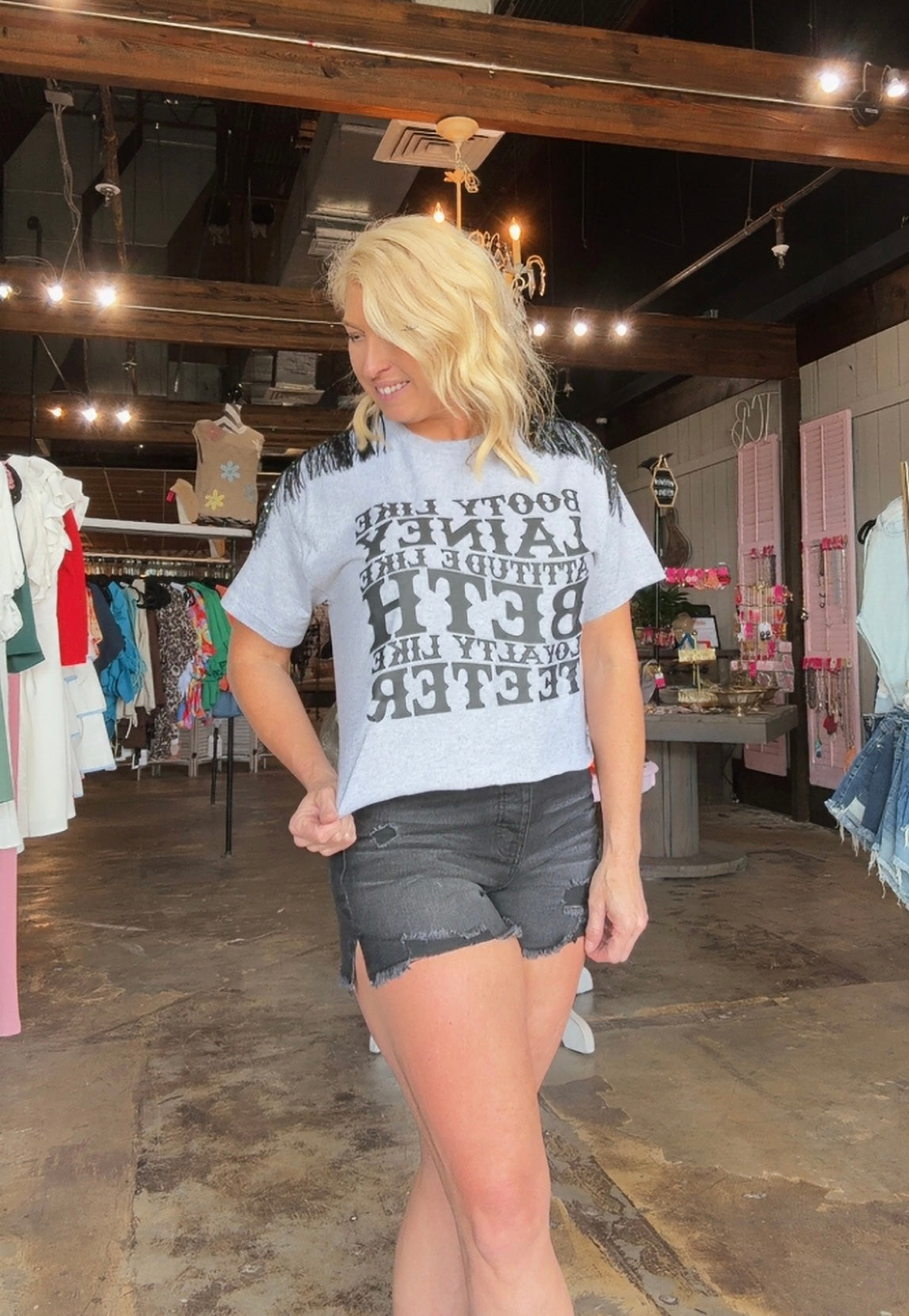 Express your sass with this country-inspired graphic t-shirt. Perfect for those who like to add a little flirt to their fashion, this sassy shirt is sure to turn heads and make a statement. Say it loud and proud with Like.upcycled
