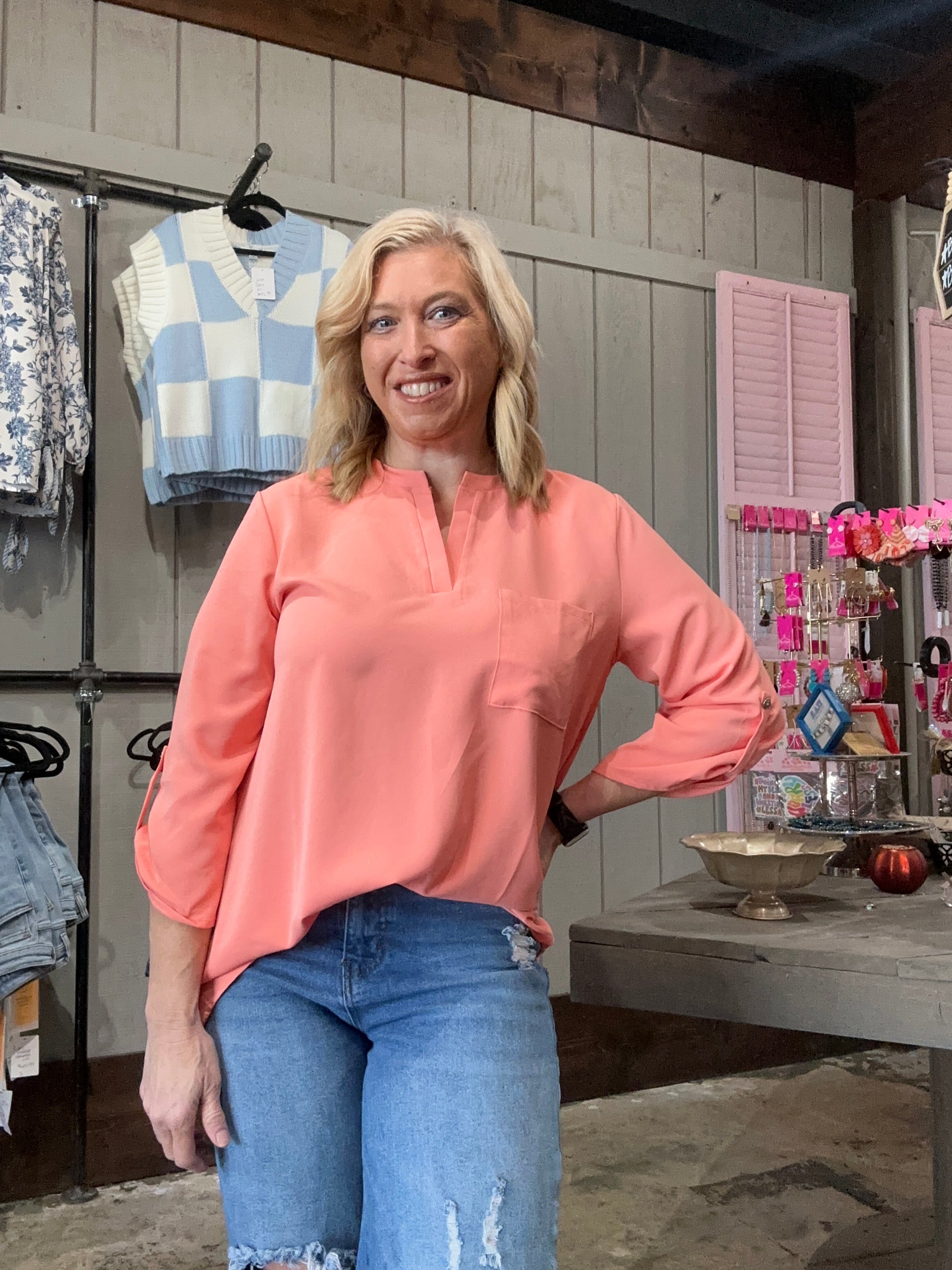 Effortlessly stylish and versatile, Lisa is made from 100% polyester with a front pocket and side slit for added detail. The classic 3/4 sleeves provide comfort and sophistication, making it perfect for any occasion. Elevate your wardrobe with Lisa!