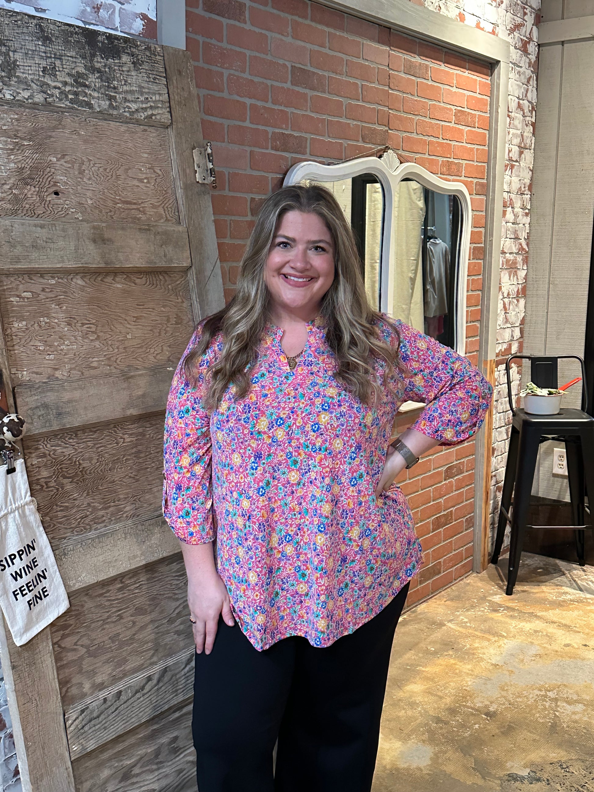 Introducing Lizzy, the ultimate wrinkle-free top for any occasion! With 3/4 sleeves and a lightweight material of 95% polyester and 5% spandex, this top is perfect for both dressing up and casual wear. Stay comfortable and stylish all day long.