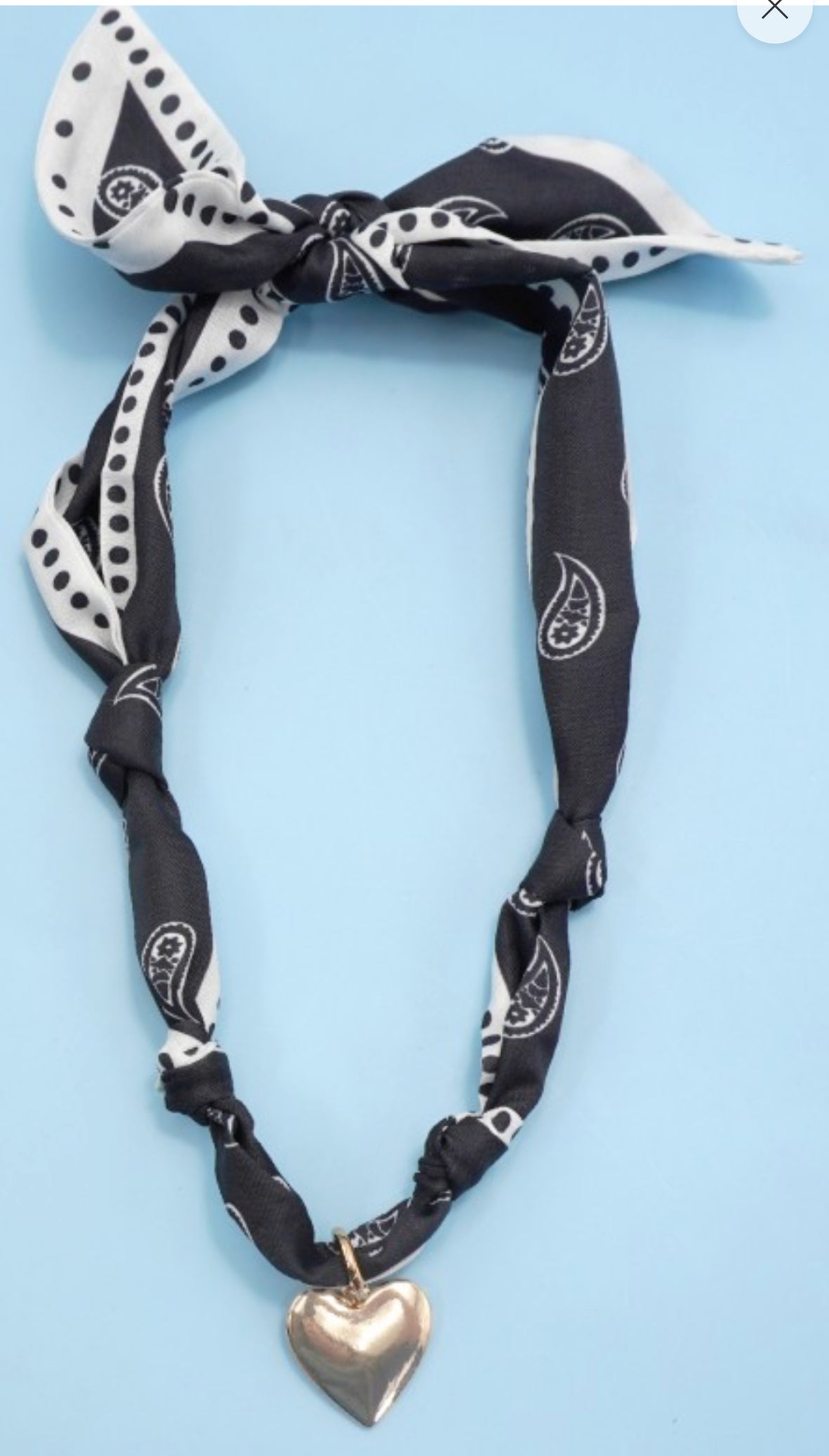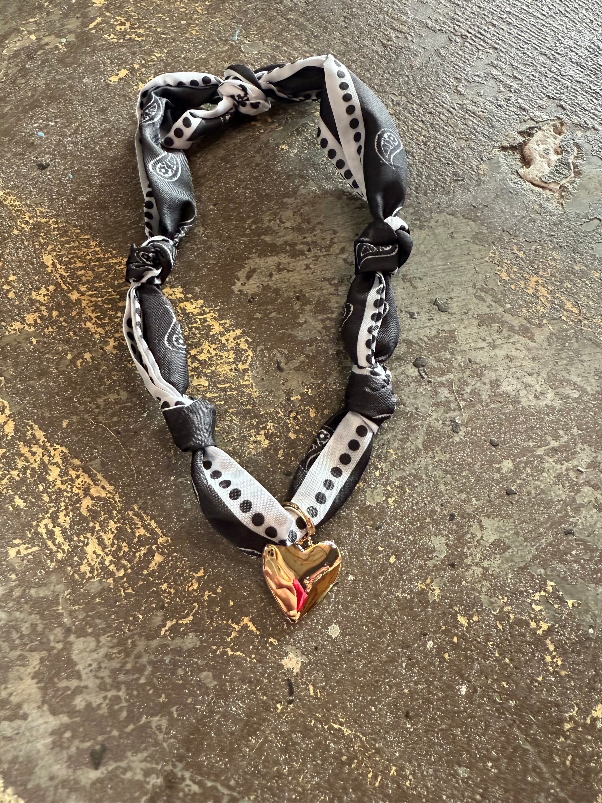 Elevate your style with Lucy, the perfect mix of elegance and playfulness. The black and white scarf necklace is adorned with a delicate heart pendant, adding a touch of charm to any outfit. Transform your look with this versatile accessory.