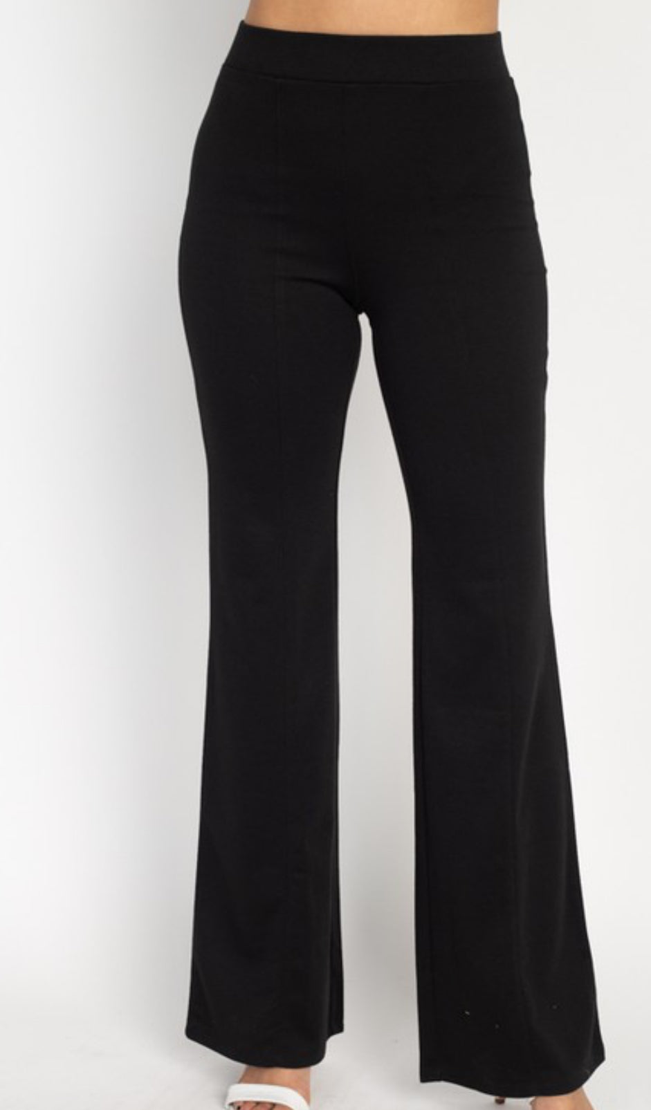 Rochelle will elevate your style with her high waist flare pants, made of a comfortable blend of 97% polyester and 3% spandex. Effortlessly chic and versatile, these pants will become your go-to staple for any occasion."