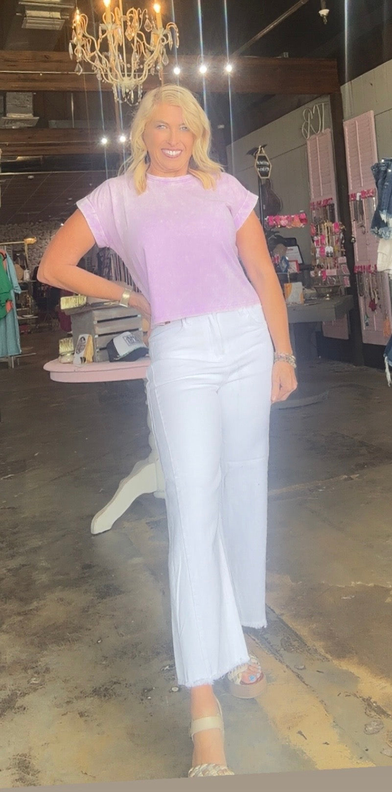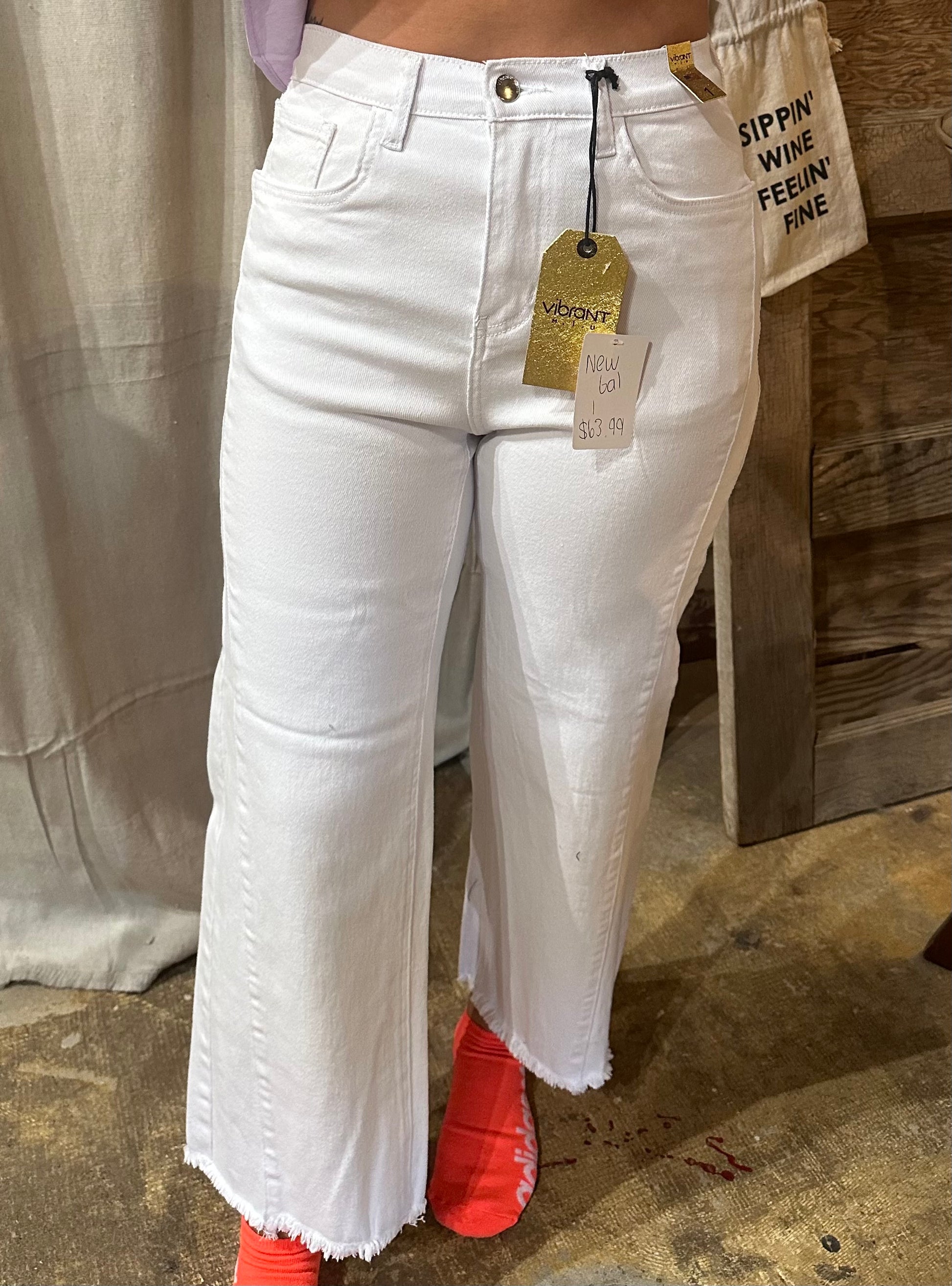 Elevate your style with our New Gal ankle wide leg jeans! Featuring fringe details at the bottom and a high-rise waist of 11 inches, these jeans are both trendy and comfortable. With a flattering inseam of 26 inches and made by Vibrant, you'll make a statement wherever you go!