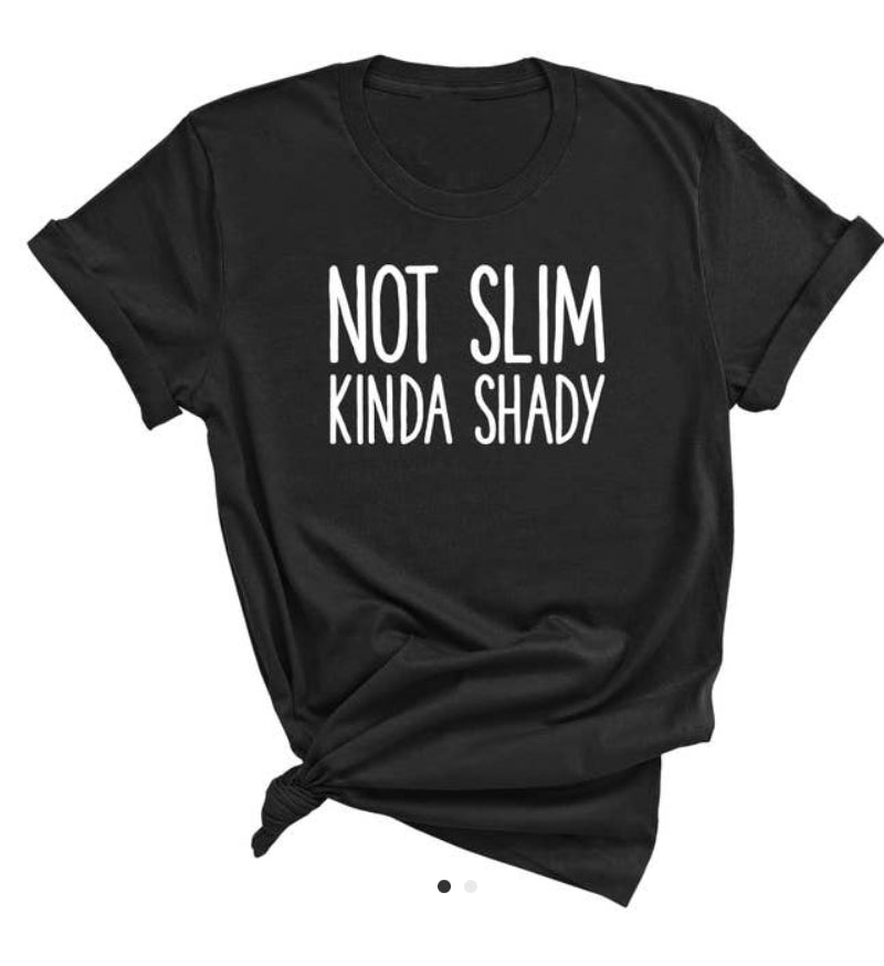 "Rock this Not Slim graphic tee and show off your unique style. Perfect for those who embrace their individuality (while maybe hiding a few extra pounds). Stand out from the crowd and turn heads with this one-of-a-kind t-shirt. Your wardrobe needs this shirt (and maybe a few extra donuts)!"