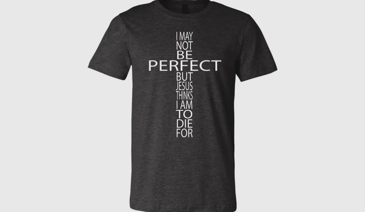Feel inspired and uplifted with our "Perfect" graphic tee! While we may not be perfect, Jesus still sees us as to die for. Wear this shirt and spread the message of love and self-acceptance. Made with quality materials for maximum comfort. Shine bright in this unique and meaningful design.