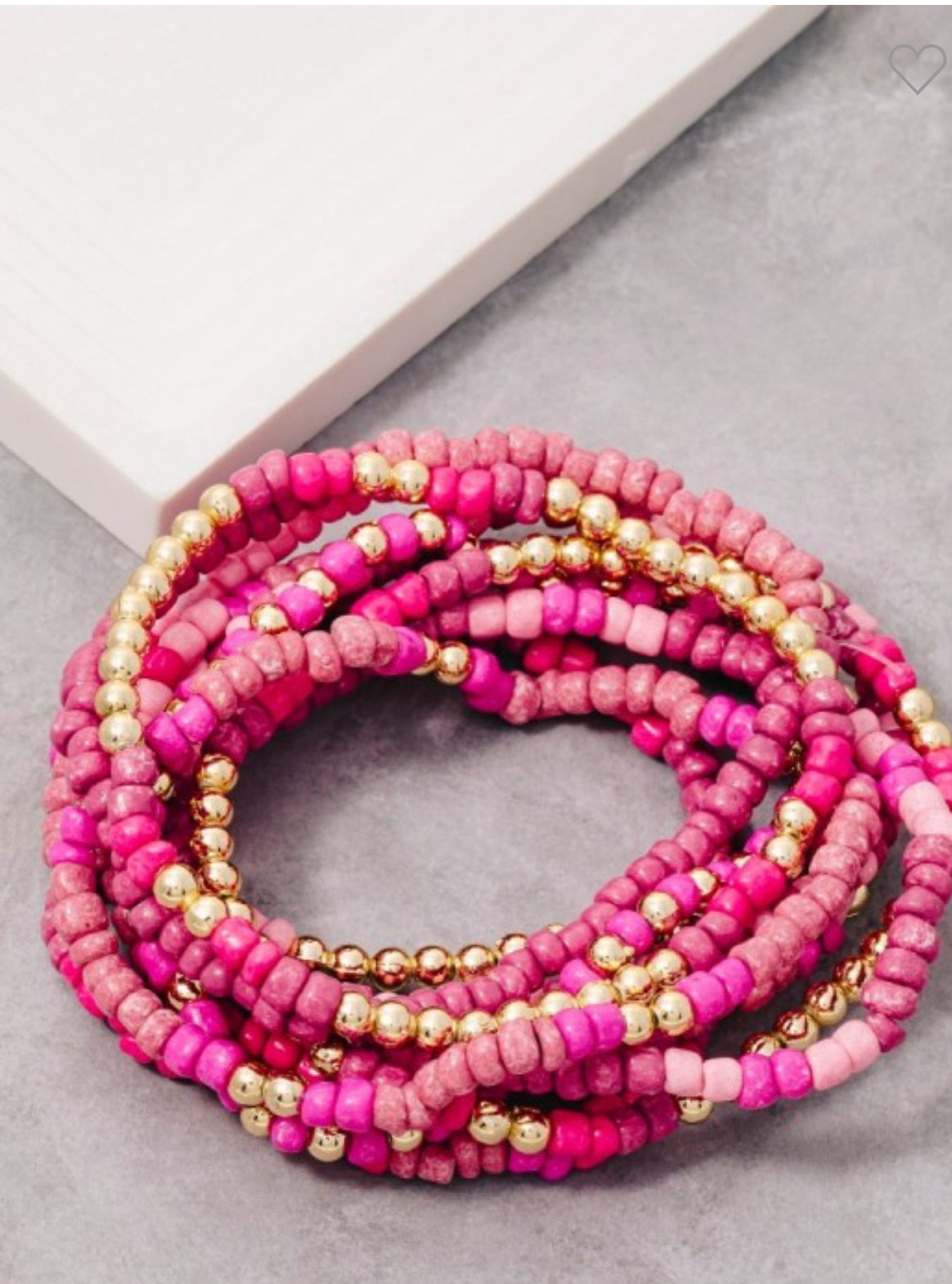 Add a touch of elegance and femininity to your style with Pink Days layering bracelets. These beautiful pink bracelets are the perfect accessory to complete any outfit and add a pop of color. With their delicate design and soft hue, they are sure to make you feel confident and stylish all day long. Elevate your look and showcase your unique fashion sense with Pink Days!
