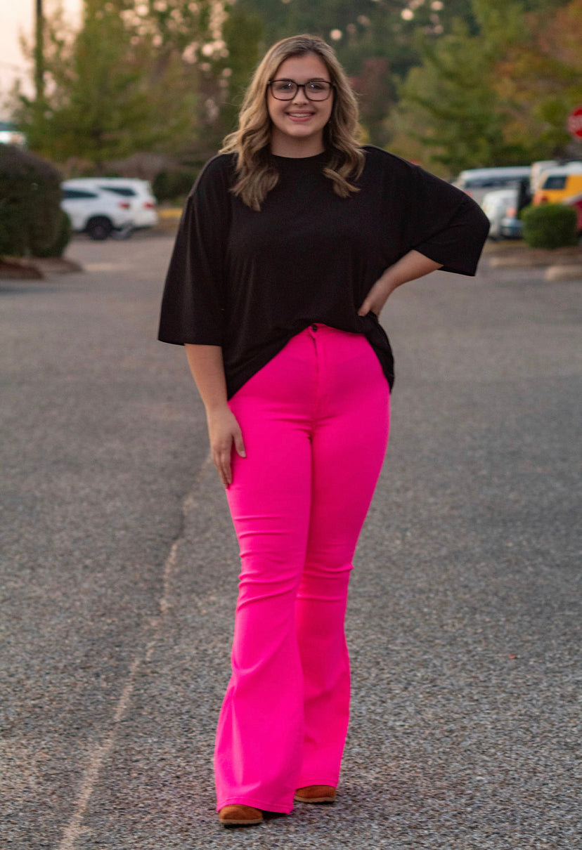 Introducing Pinky Pink's Pink Flare Jeans - the perfect combination of style and comfort. Cut from high-waisted, super-stretch fabric, these jeans hug your body in all the right places while giving you all-day comfort. Have the perfect night out on the town or just relax on the couch - Pinky Pink has you covered!