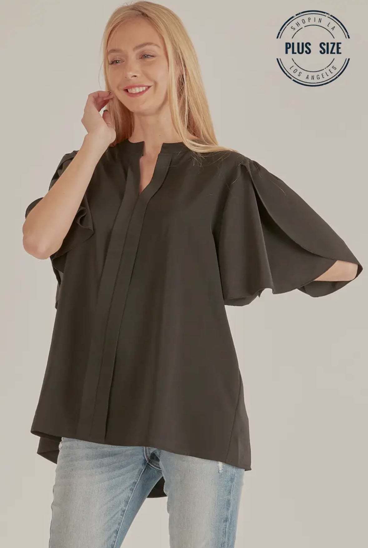 Elevate your wardrobe with our Petal Flutter Sleeve Woven Top! This versatile piece can be dressed up or down, making it perfect for any occasion. With its elegant flutter sleeves and lightweight fabric, you'll feel stylish and comfortable all day long. Upgrade your look today!