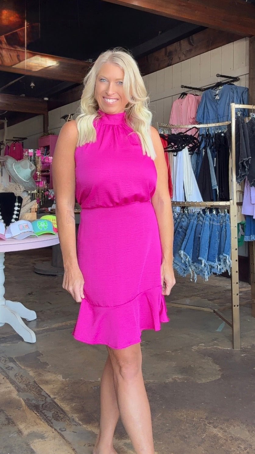 Indulge in luxury with the Raven, a stunning satin halter dress with a flirty ruffle hem. Made with 100% polyester, this dress will make you feel confident and glamorous at any event. Elevate your style and turn heads with the Raven.