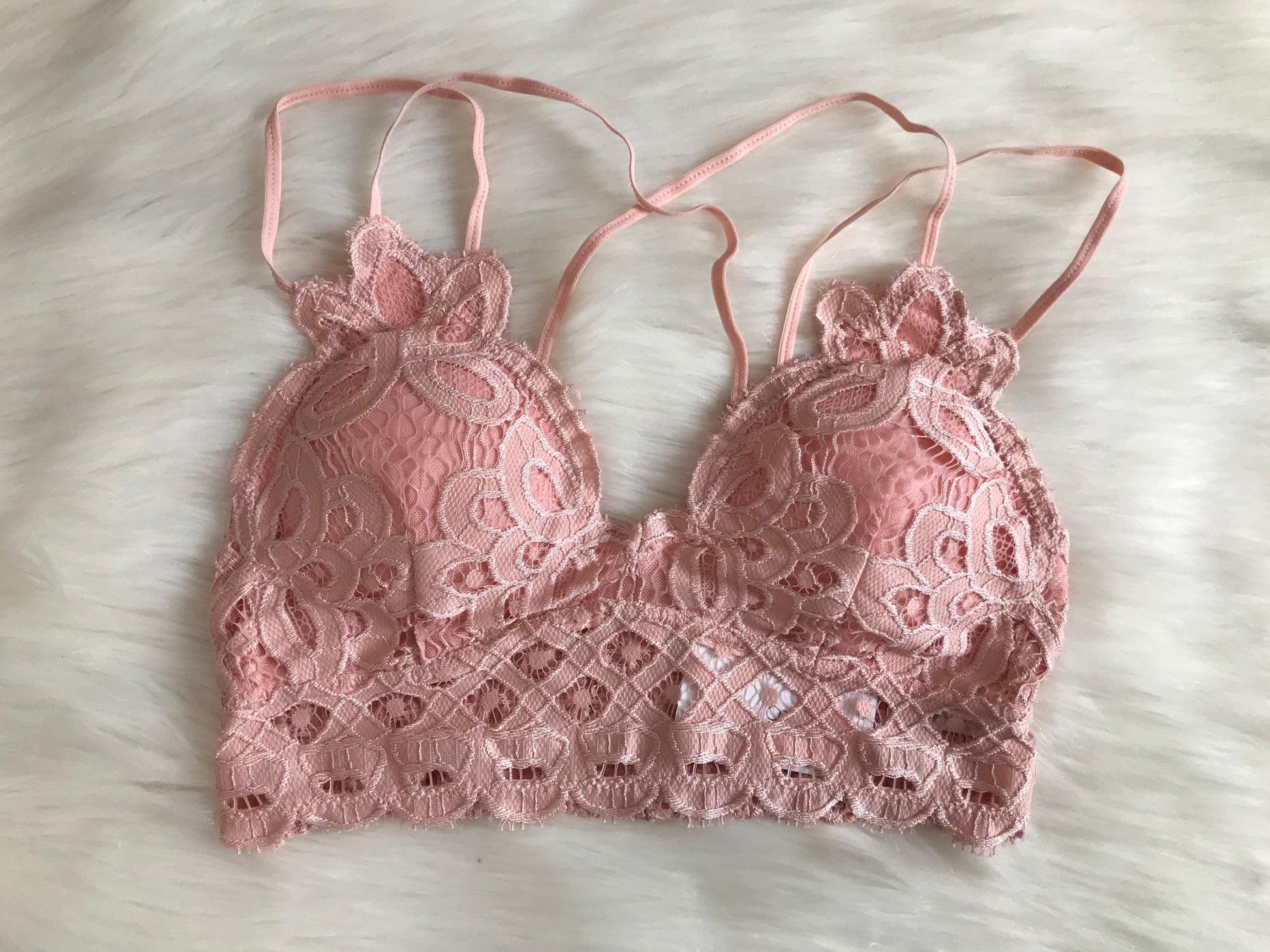 Beautiful crochet lace bralette, pull over style, long line, all day comfort, v neckline, removable bra pads, criss-cross straps at back, the straps have a silver detailing, adjustable bra straps, and perfect amount of stretch. 90% Nylon, 10% Spandex S: 32B, 34A, 34B M: 34B, 34C, 36B L: 36B, 36C, 38B,38C