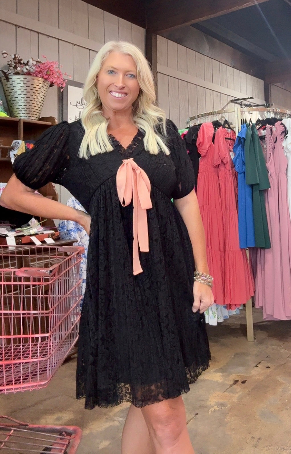 Indulge in a dreamy fantasy with our Rosewater Dream dress. Featuring a delicate ruffle V-neck, a charming ribbon bow, and intricate pleated lace lining, this dress will make you feel like a fairy-tale princess. Perfect for any special occasion, it will make you stand out in style.