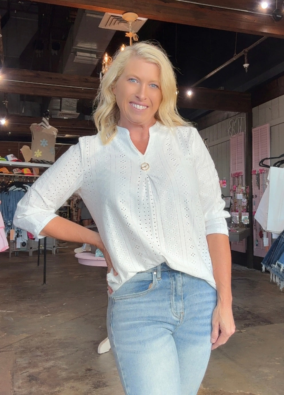 Introducing Sally - your new must-have blouse! With 3/4 sleeves, a flattering v-neckline, and a variety of colors to choose from, this blouse is perfect for any occasion. Dress it up for a day at the office or keep it casual for a weekend outing. Slay the fashion game with Sally!