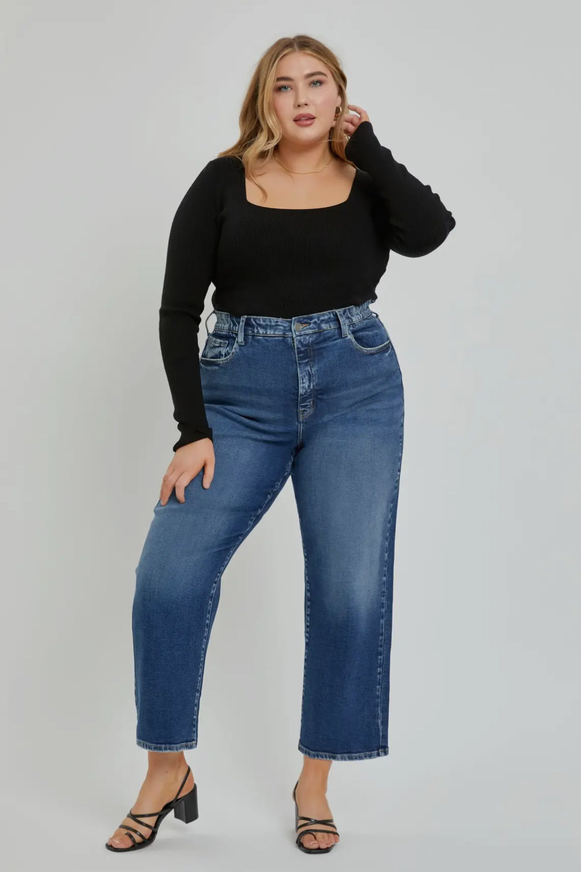 Step into style with Ms Cello Brand plus size high rise straight jeans! These ankle length, dark wash jeans feature Coolidge too Al fading, light whiskering, and a dark wash that will have you looking and feeling great. Perfect for any occasion, these jeans offer both comfort and fashion-forward style.