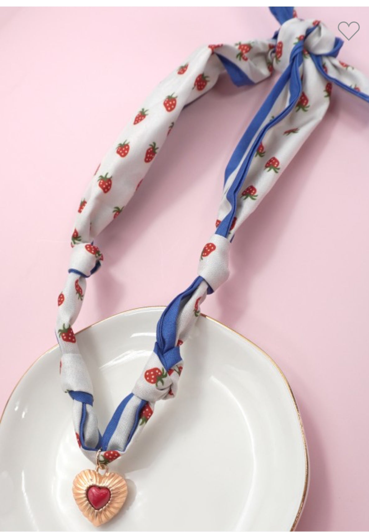 Wrap yourself in style with our deliciously sweet Strawberry scarf necklace! Made with luxurious materials, our scarf necklace features a delicate strawberry design that adds a pop of fun to any outfit. A must-have accessory for any fashion-forward individual. Indulge in the sweetness and elevate your look with our Strawberry scarf necklace!