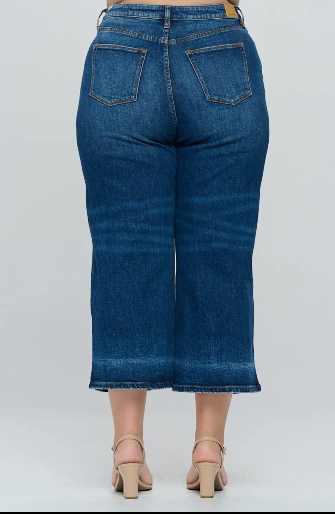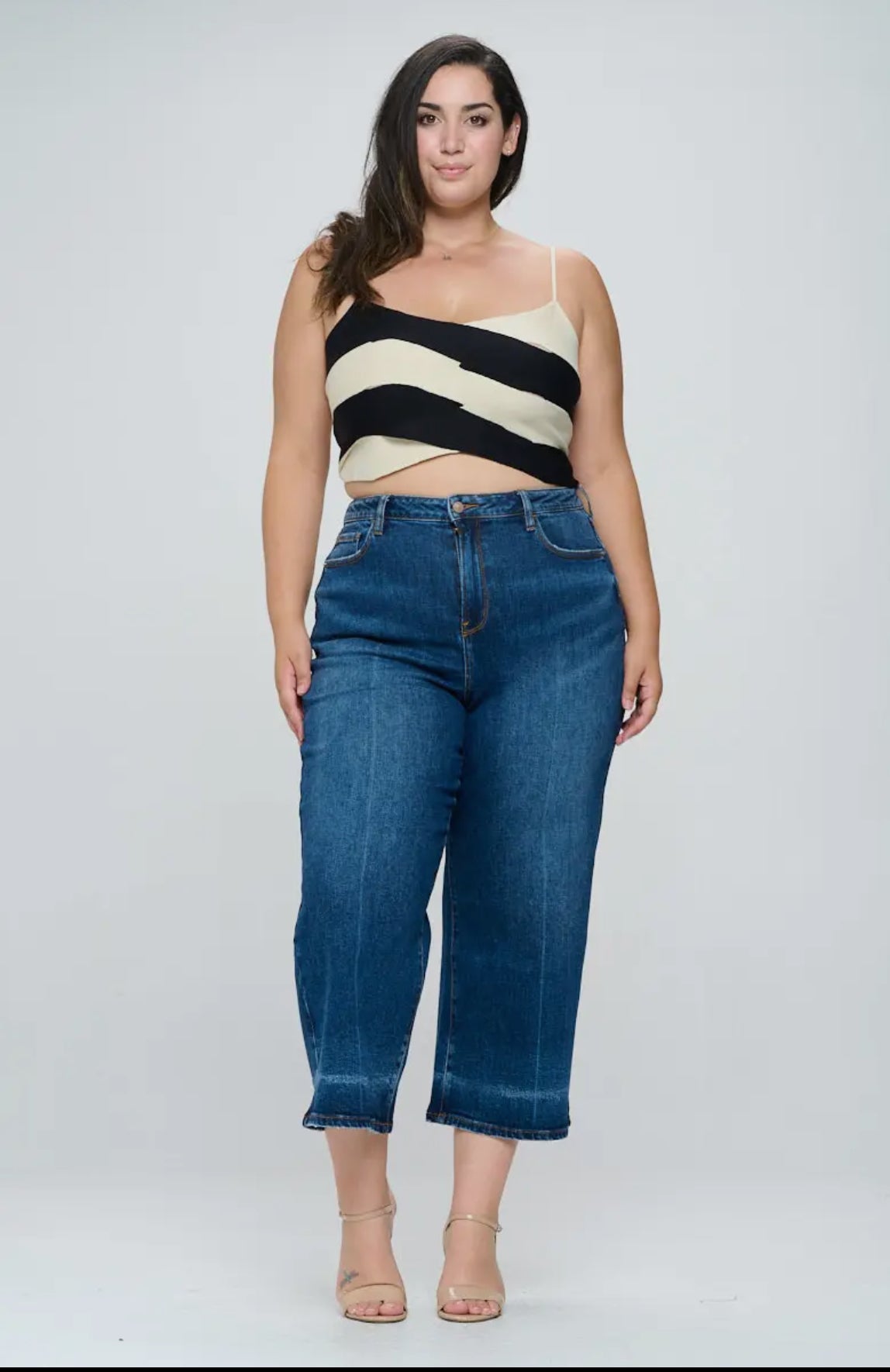 "Experience effortless style and comfort with our Taylor jeans. The dark wash and two tone design adds a unique touch to the wide leg crop fit. Perfect for any occasion, these jeans will elevate your wardrobe and keep you looking stylish all day long!"