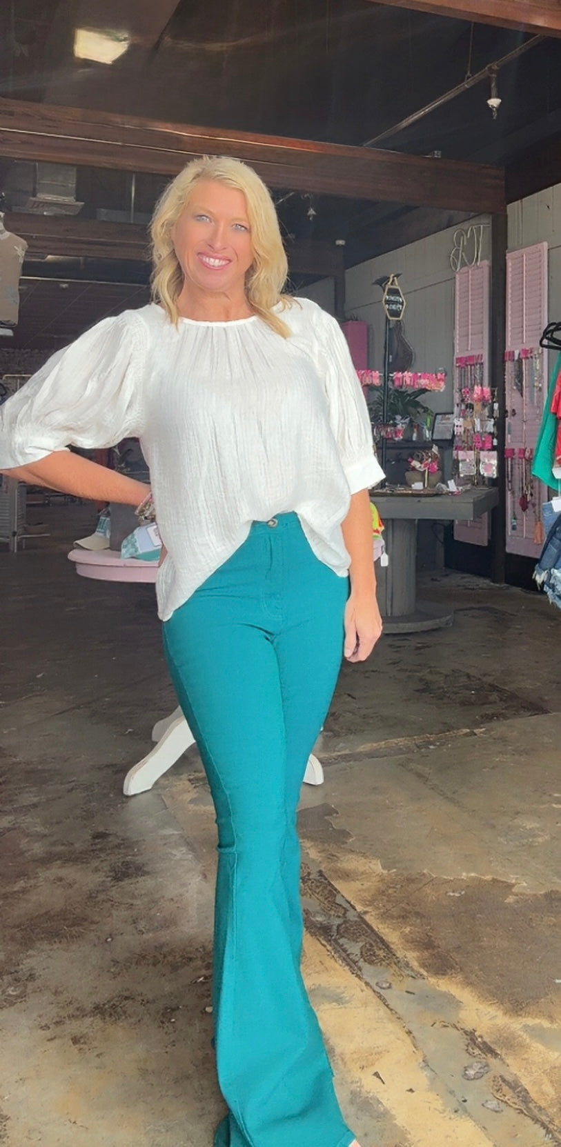 Add instant charm to your wardrobe with these stunning Teal Days hyperstretch flares by JCJQ. Crafted from a high-quality blend of modal and spandex for maximum comfort, these flares give you the perfect combination of style and ease. Will you join us in this teal-tinted journey?