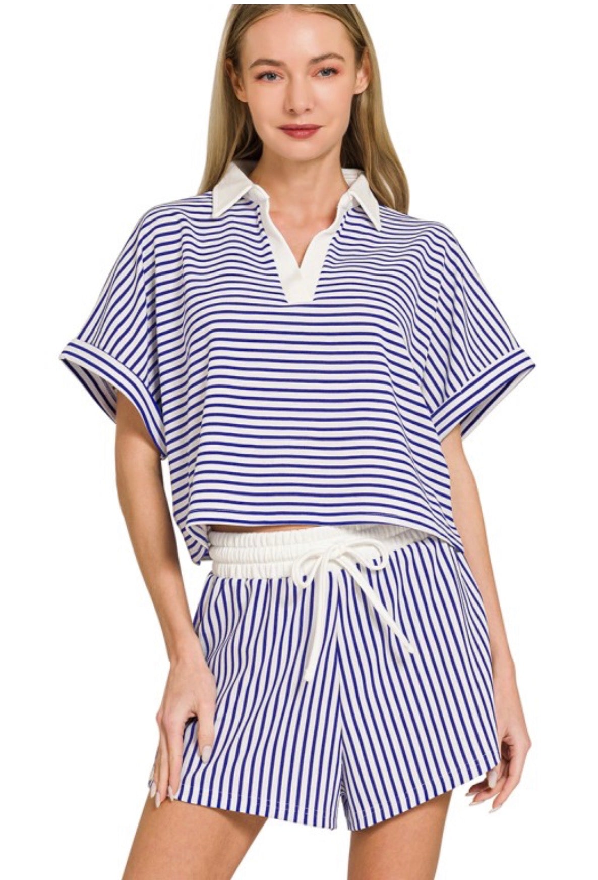 Elevate your casual style with The Insta-Worthy Set! This adorable stripped collared top and short set, made from a soft blend of 98% polyester and 2% spandex, promises unbeatable comfort without sacrificing cuteness. Perfect for those laid-back days, it effortlessly combines relaxation and fashion!