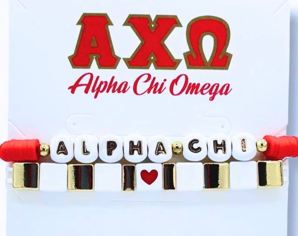 This I ❤️Alpha Chi Omega bracelet is the perfect way to show your sorority pride! With its stackable design, you can mix and match with other charms to create a flashy look that'll have all your sisters (and potential new ones) talking. Go Greek - get yours today!